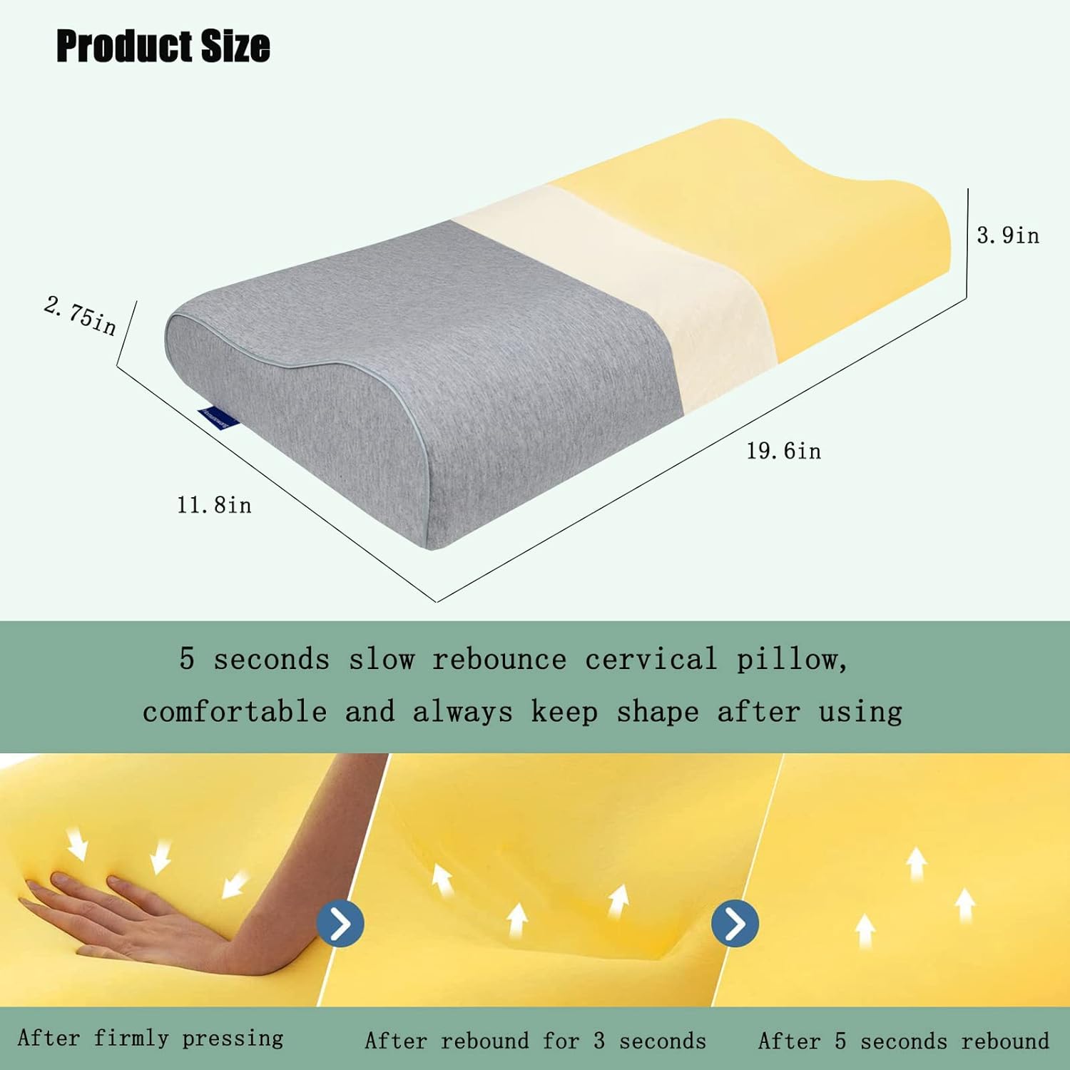 - 【Ergonomic Memory Foam Pillows】: 3-5 seconds slow rebound, high-density memory foam and ergonomic design allow the cervical pillow to contour your head, neck and shoulders, greatly reducing pressure on the neck and shoulder. This cervical pillow will save your trip if you have neck issues and worry about support for your neck while traveling.