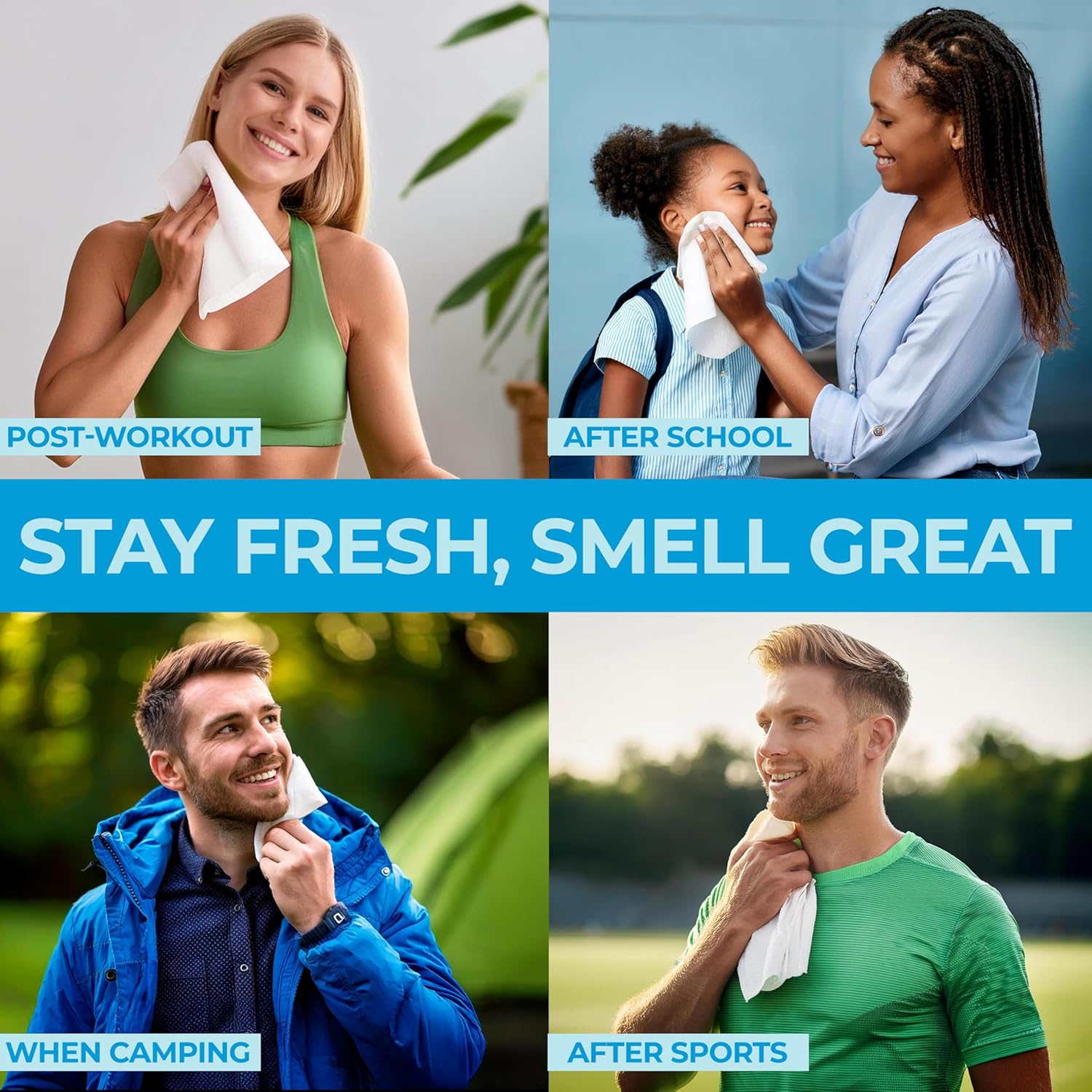 - Travel-Friendly Pack: Our soft shell packaging has a tight resealable closure that ensures moisture retention. Its simple peel-off cover allows easy access while on the go. You get 100 large wipes with free 8 individually packed travel-size bath wipes. Perfect to use as hurricane preparedness items, tailgating, music festival, beach, glamping & camping essentials, RV camper van must haves, incontinence wipes, shower alternative adult wet wipes, and post workout gym wipes for men and women.
