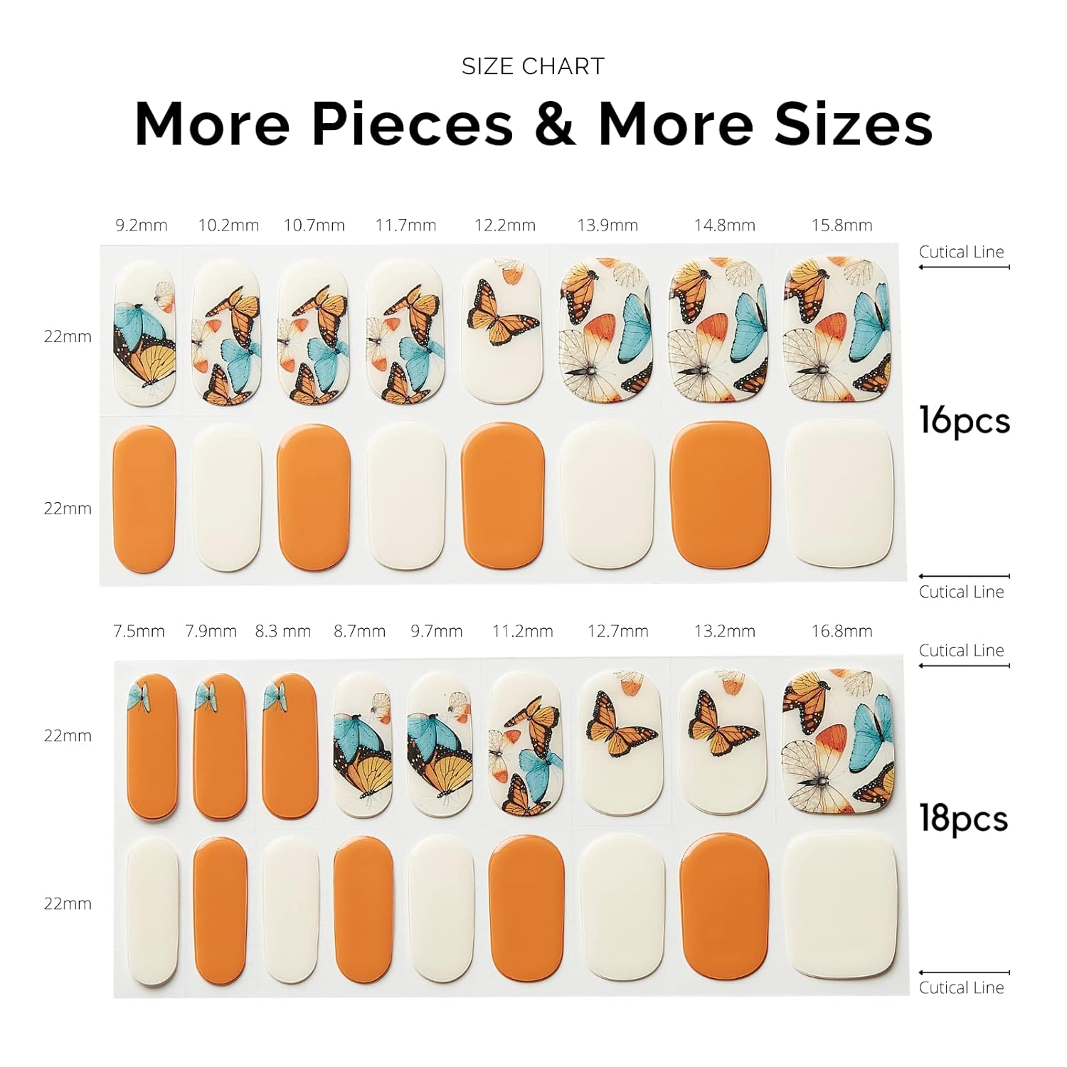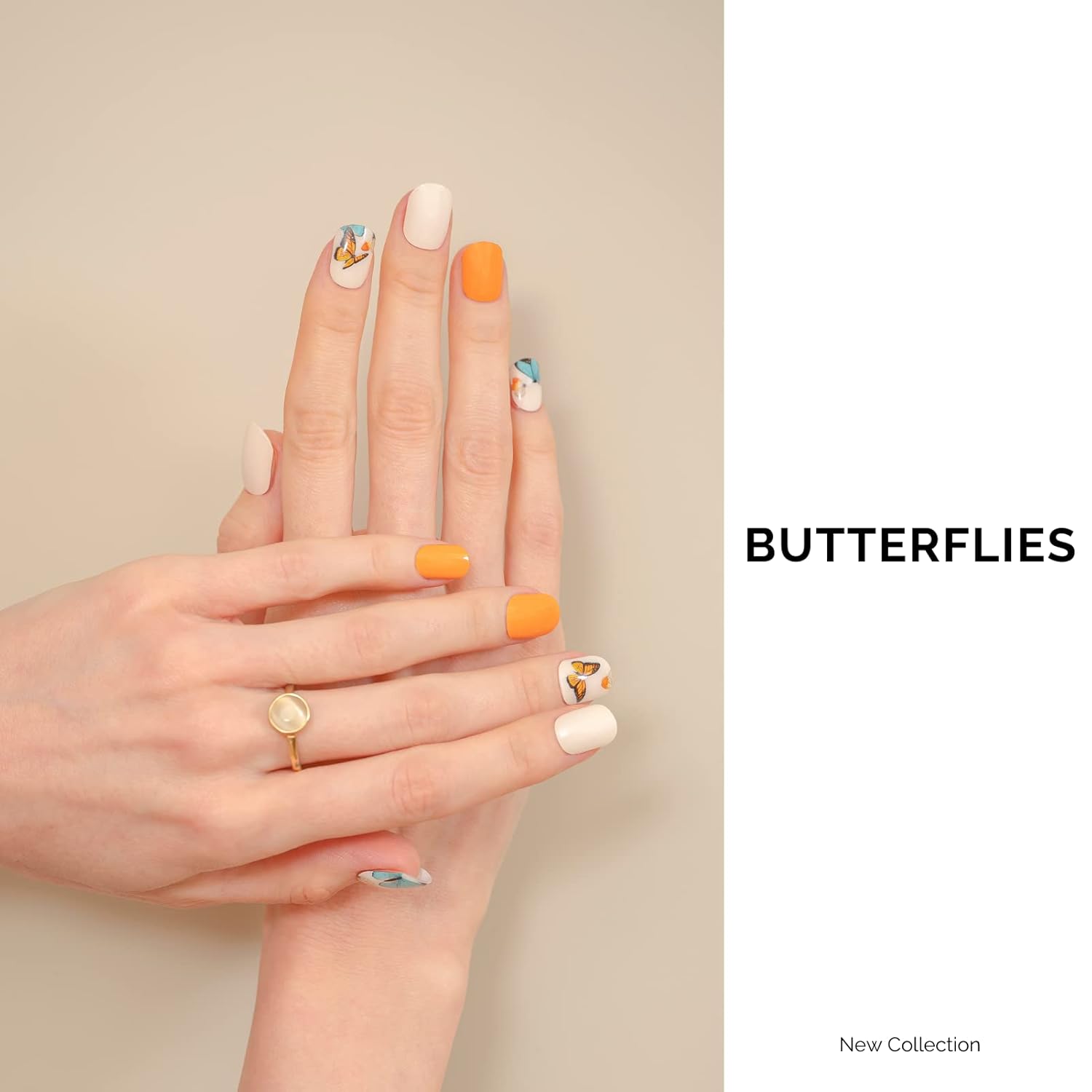 NAILOG Semi Cured Gel Nail Strips, 34 pcs Salon-Quality Gel Nail Stickers, Long Lasting Nail Wraps for Women with Soft Gel Finish | Butterflies