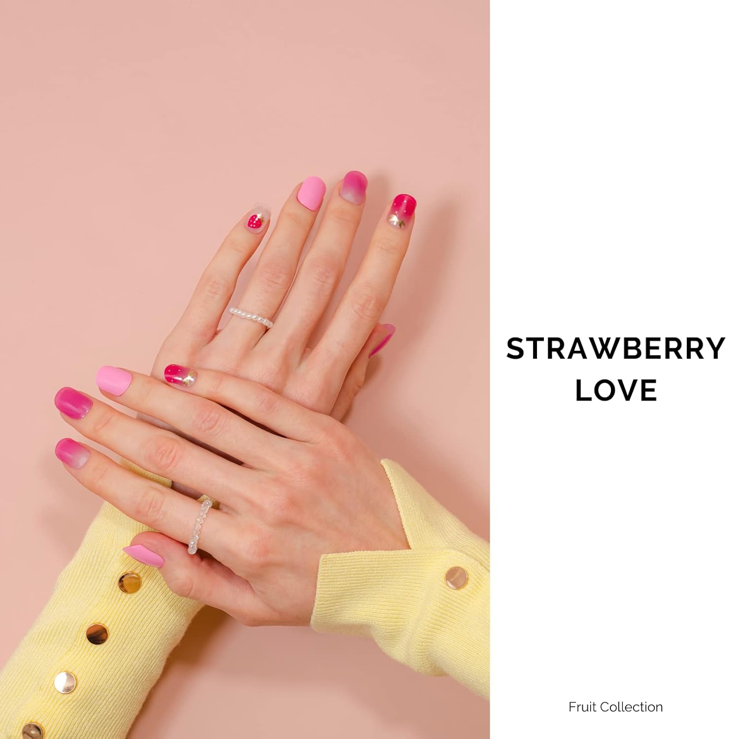 NAILOG Semi Cured Gel Nail Strips, 34 pcs Salon-Quality Gel Nail Stickers, Long Lasting Nail Wraps for Women with Soft Gel Finish | Strawberry Love