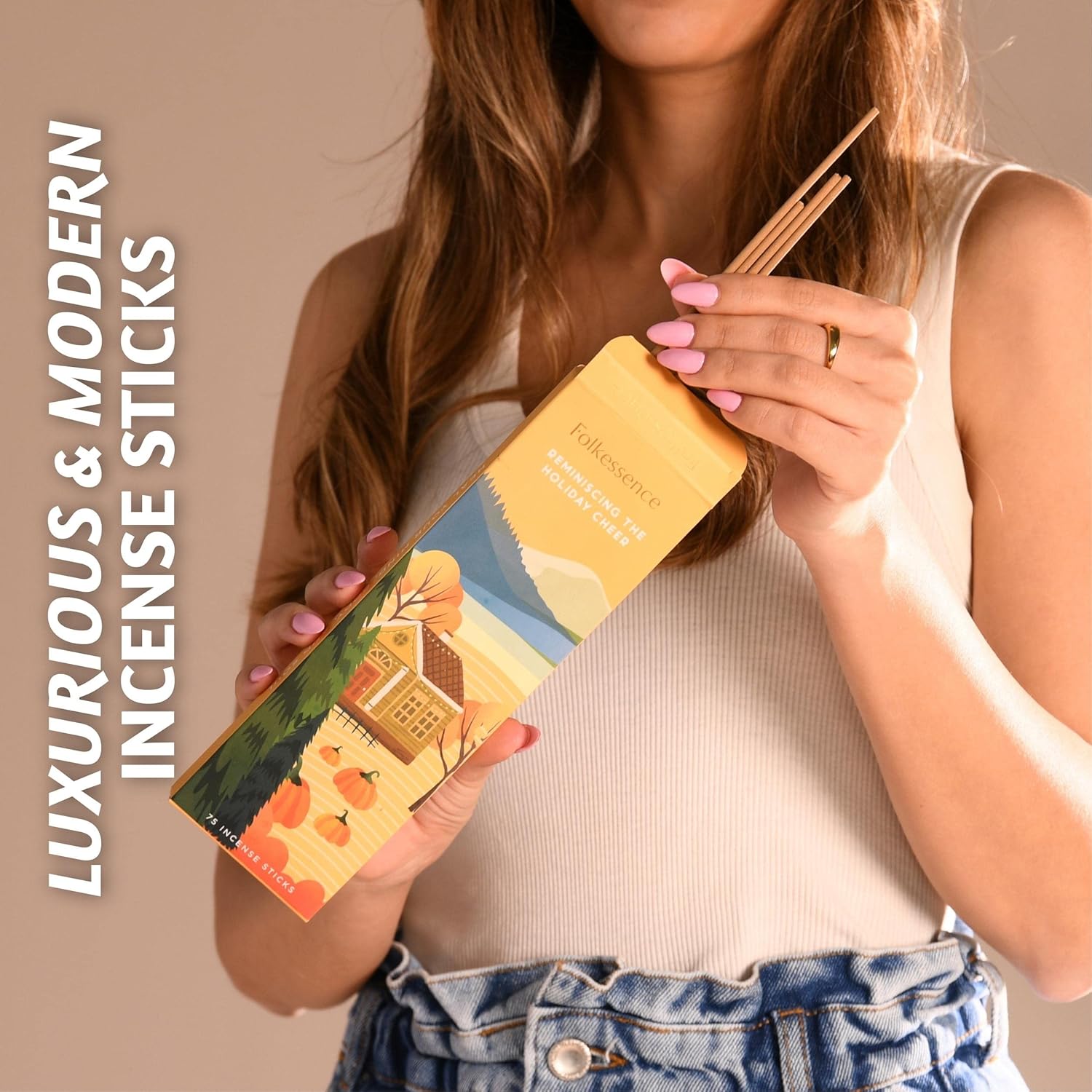 Folkulture Incense Stick | Pack of 75 Organic Fall Incense Sticks for Meditation | 45 Mins Burn Time | Pumpkin Spice Inscents Non Toxic Fall Scents for Home | Inscents-Sticks for Fall Essentials