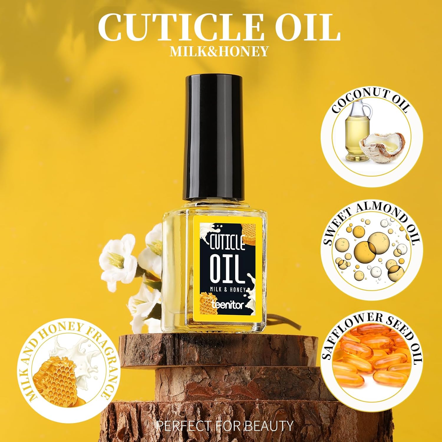 - Milk and Honey Cuticle Oil: Apply cuticle oil before and after soaking nails to protect your hands and moisturize your nails. Natural honey and milk cuticle oil, rich in oils and multivitamins. Can quench dry cuticles, provide protection and deeply soothes and hydrates skin. Cuticle oil protects and nourishes dry, brittle cuticles and nails. leaving your cuticles and nails looking shiny and lustrous