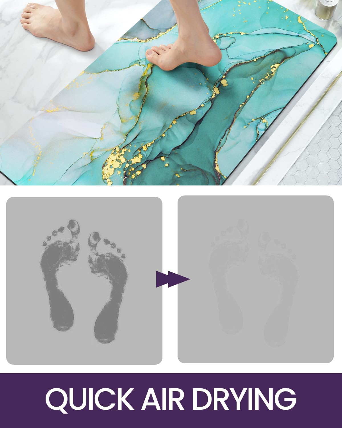 DEXI Bathroom Mat Ultra Thin, Non Slip Bath Rug for Shower Floor, Absorbent Quick Dry Marble Bathmats Low Profile, 17x32, Turquoise Green
