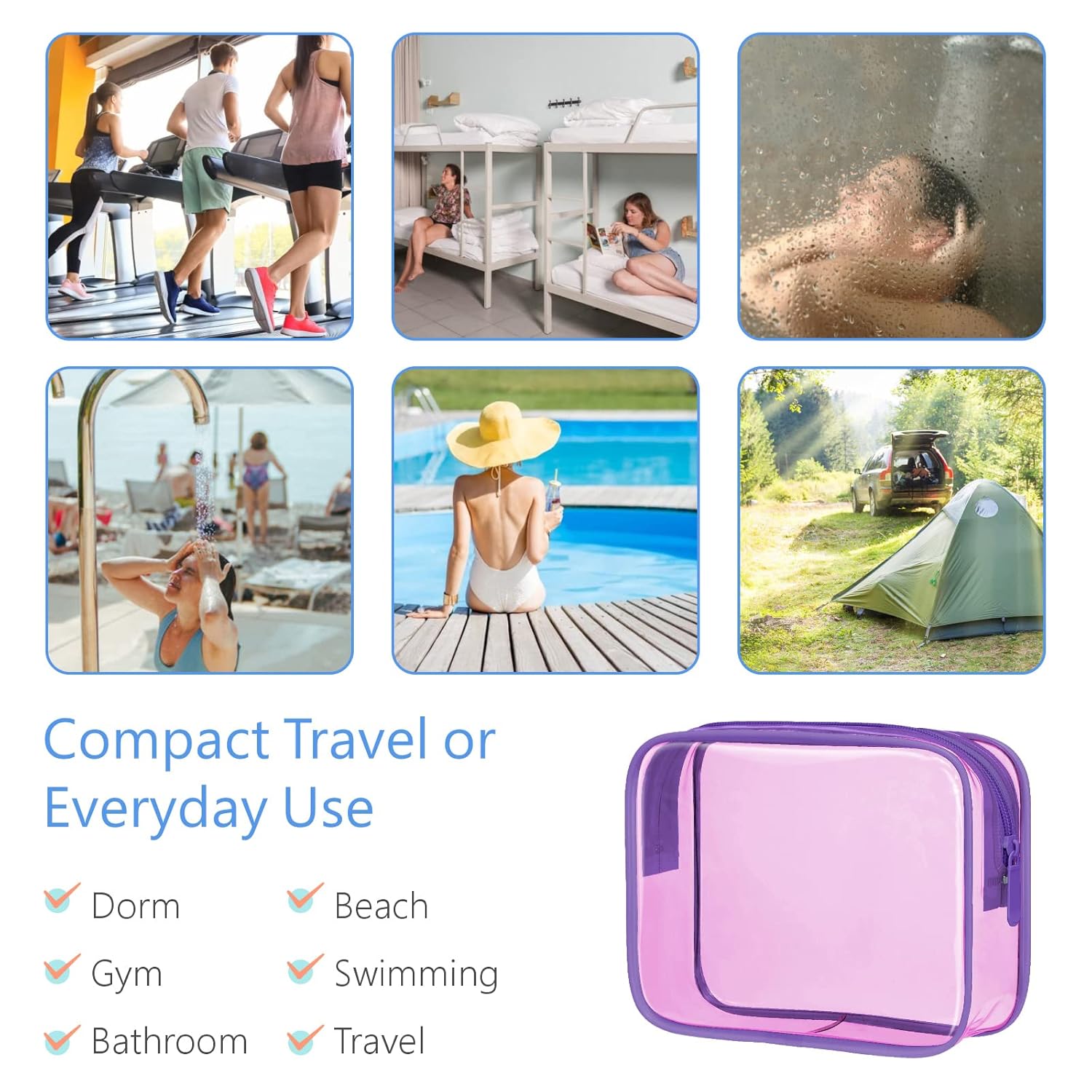 - Easy to Access & Trendy Colors: The transparent material helps you quickly find what you need without having to dig through a messy bag. Various colors help distinguish your clear makeup bags from other travel accessories and separate items in your suitcase. This travel toiletry bag is suitable for age 12 or above
