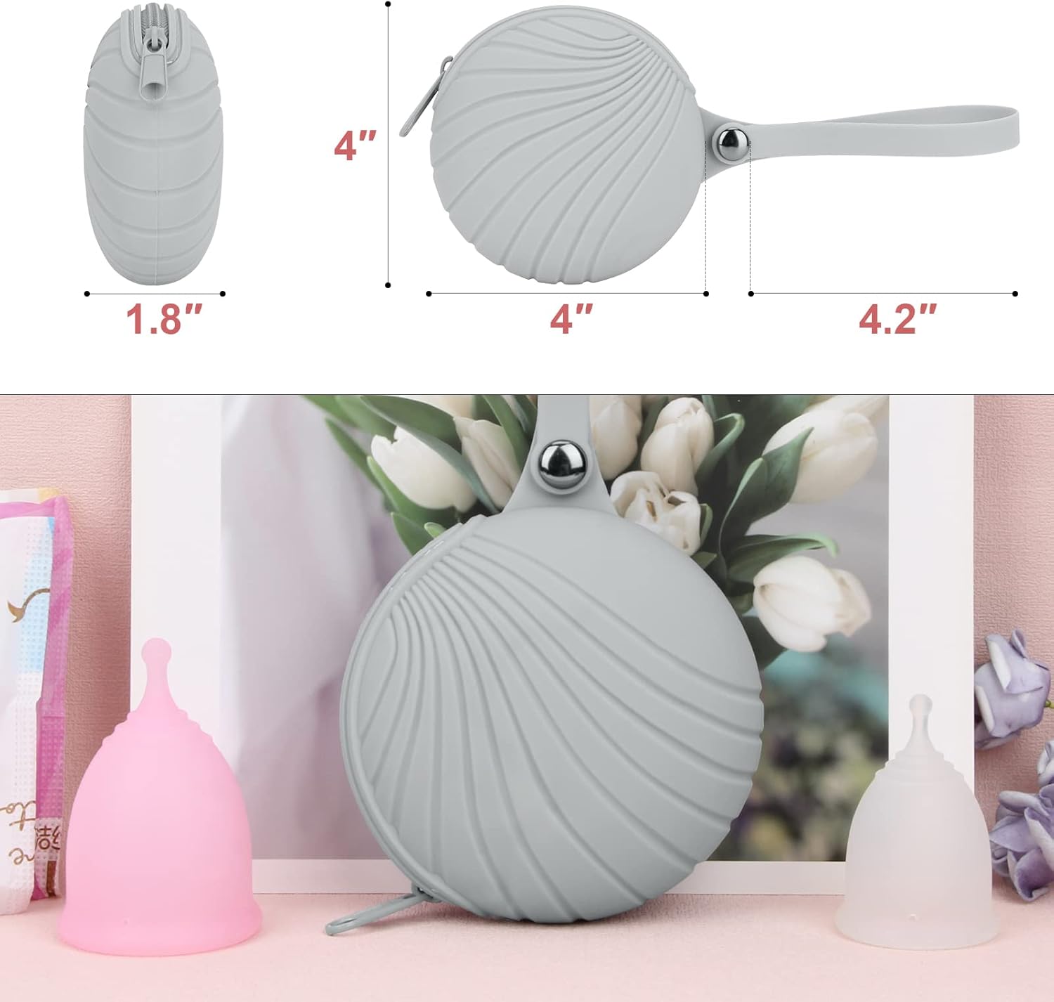 Desing Wish Menstrual Cups Case Storage Bag Travel Period Cup Carrying Pouch Washable Leak-proof Silicone Bag for Menstrual Cup, Tampons, Keys and Other Small Items (Grey)