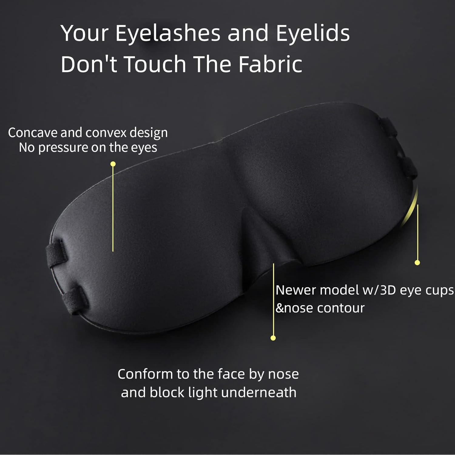 ALASKA BEAR Sleep Mask 2 Straps, Deep Concave Molded Foam Mask with Convex Eye Cups and Light Blocking Nose Contour, Two Adjustable Elastic Bands Stay on Head w/o Slipping, Black