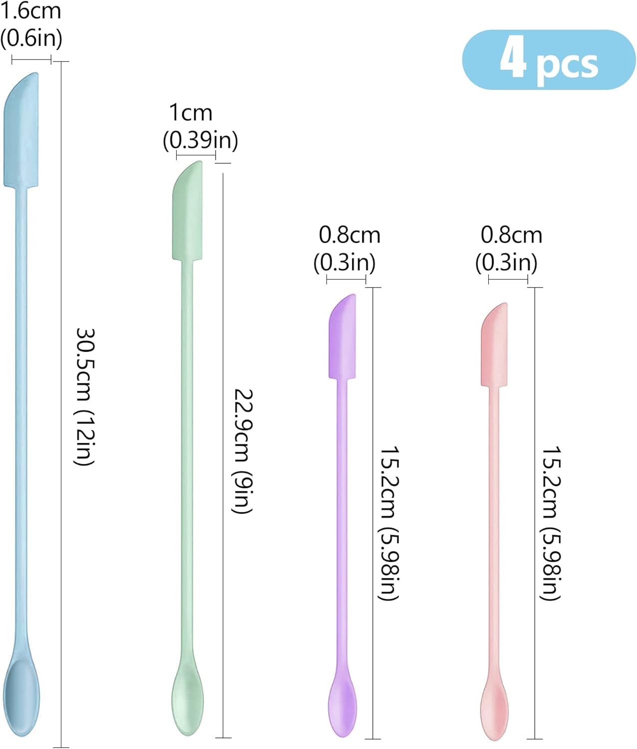Mini Spatula Silicone Spatula Set - 4pcs Small Makeup Scrapers for Cosmetics, Reusable Beauty Tiny Tools, Thin Jar Scraper, Get the Last of the Makeup Out of the Bottle(Grace Colors)