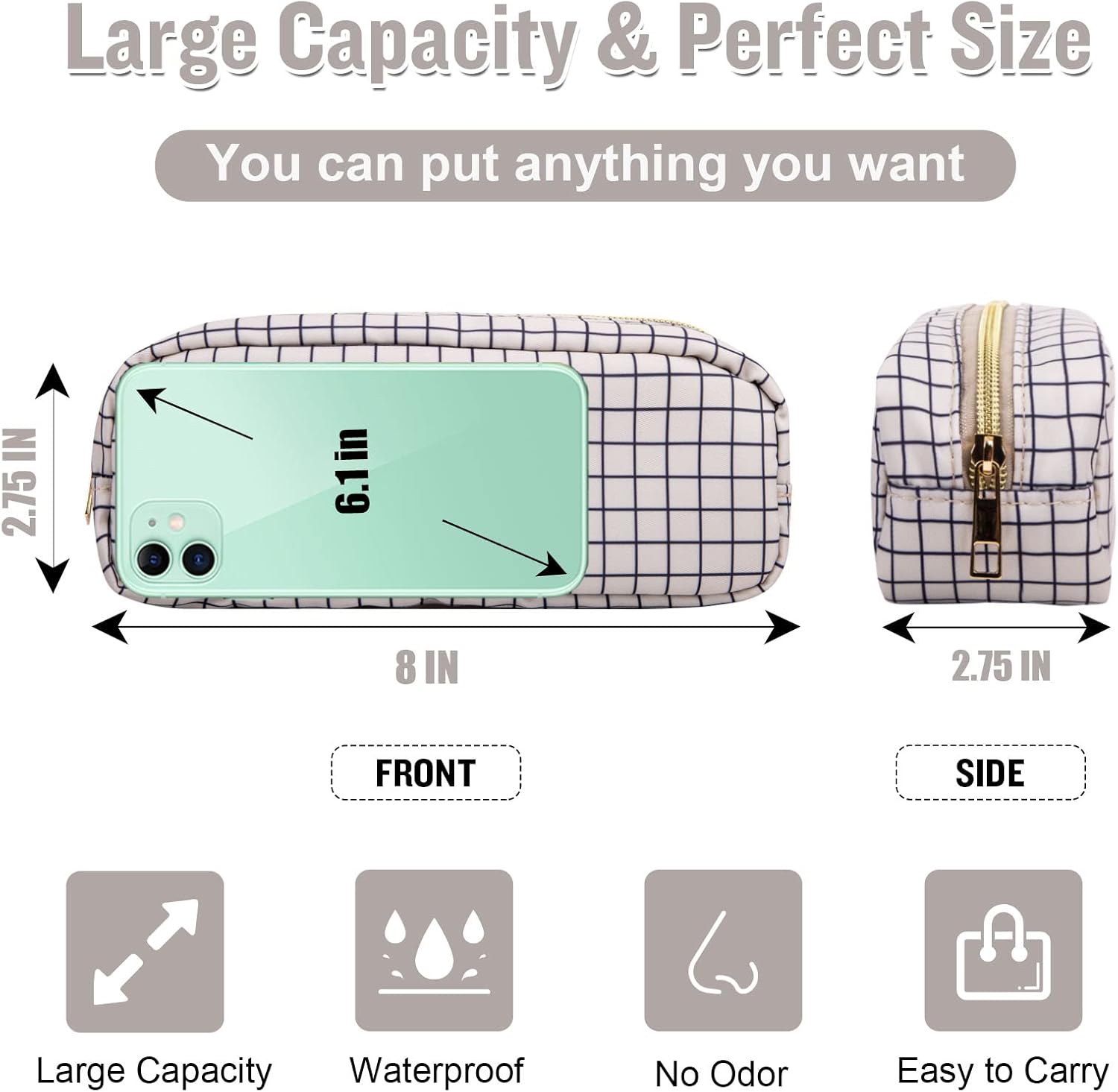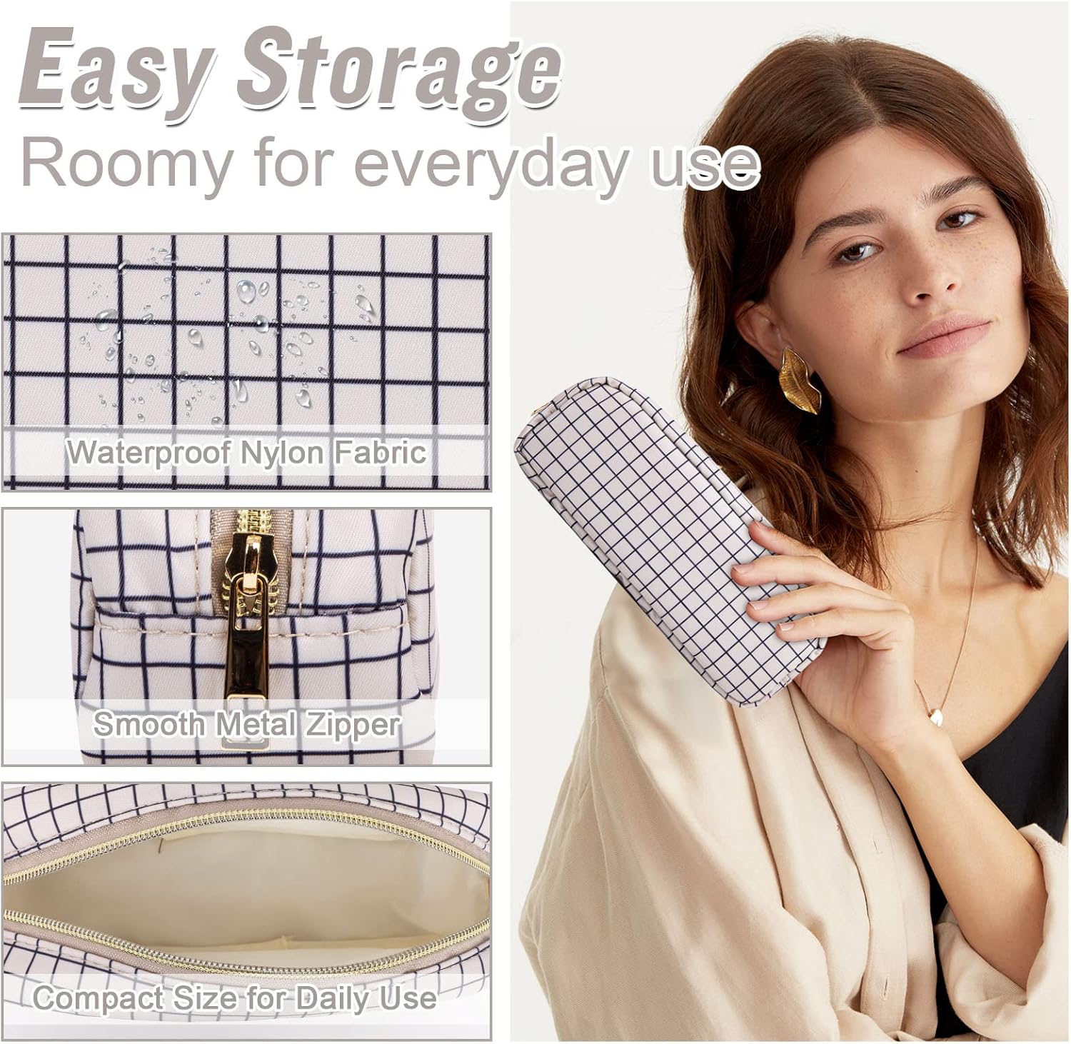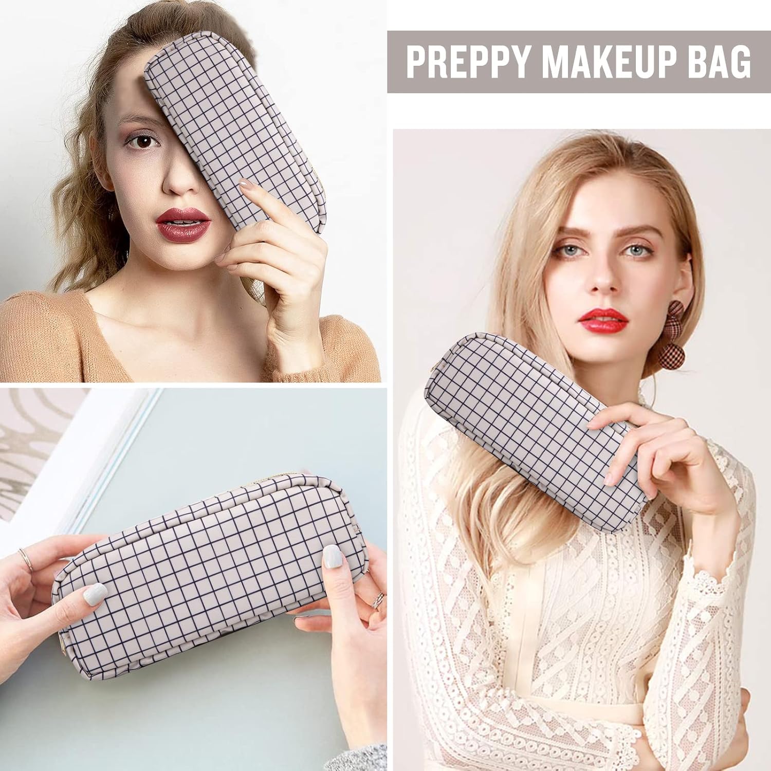 Nylon Slim Makeup Bag, Cute Makeup Brush Bag Checkered Makeup Bag Preppy Cosmetic Zipper Pouch for Purse, Travel Toiletry Bag Coin Pouch Make Up Organizer for Women Men Girls