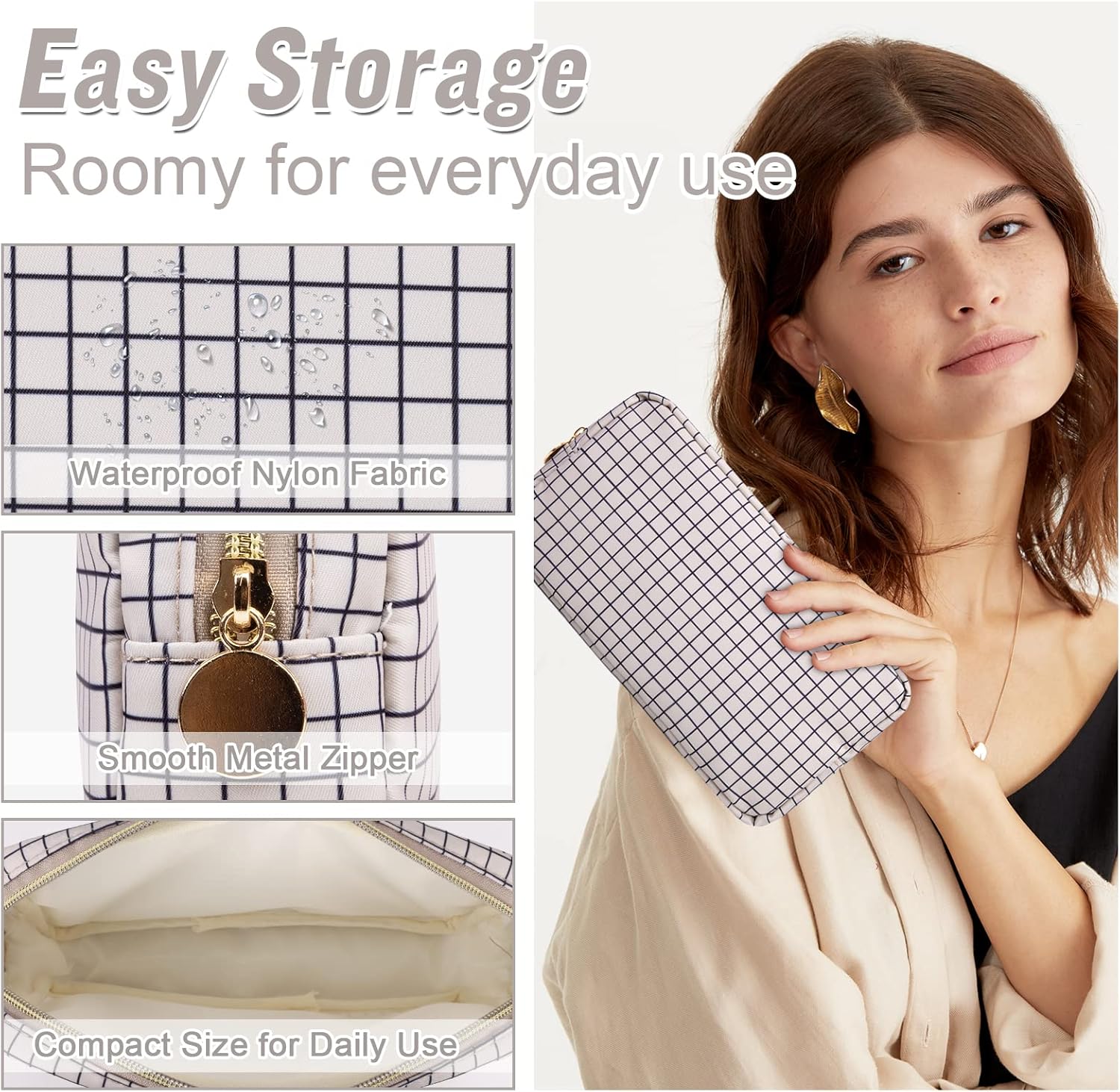 Nylon Small Makeup Bag for Purse, Cute Checkered Makeup Bag Preppy Cosmetic Zipper Pouch Purse, Waterproof Portable Travel Toiletry Bag Clutch Make Up Brush Bag Organizer for Women Girls(Checkered)