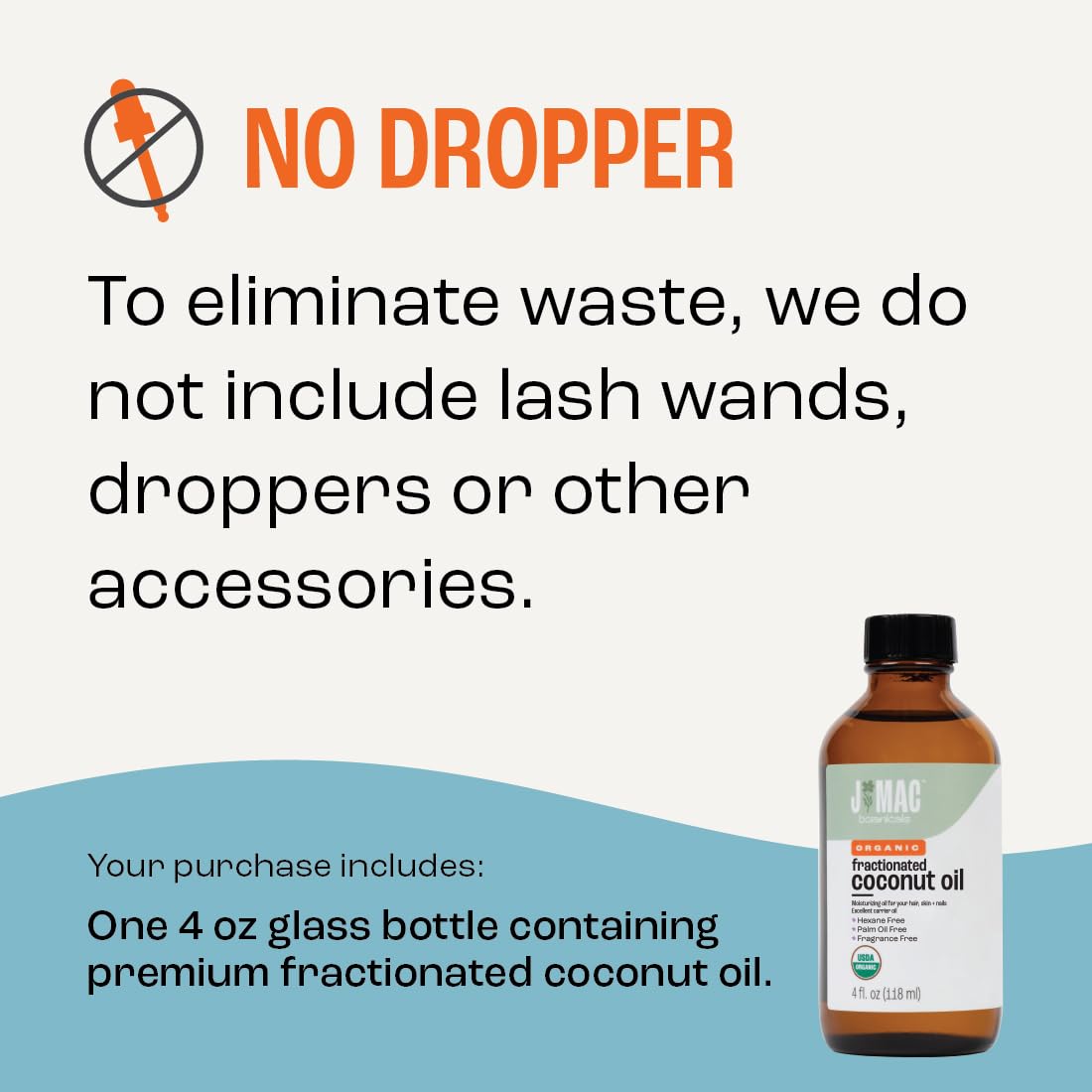 J MAC BOTANICALS Organic Fractionated Coconut Oil (4 oz Glass Bottle) Organic Carrier Oil and moisturizer