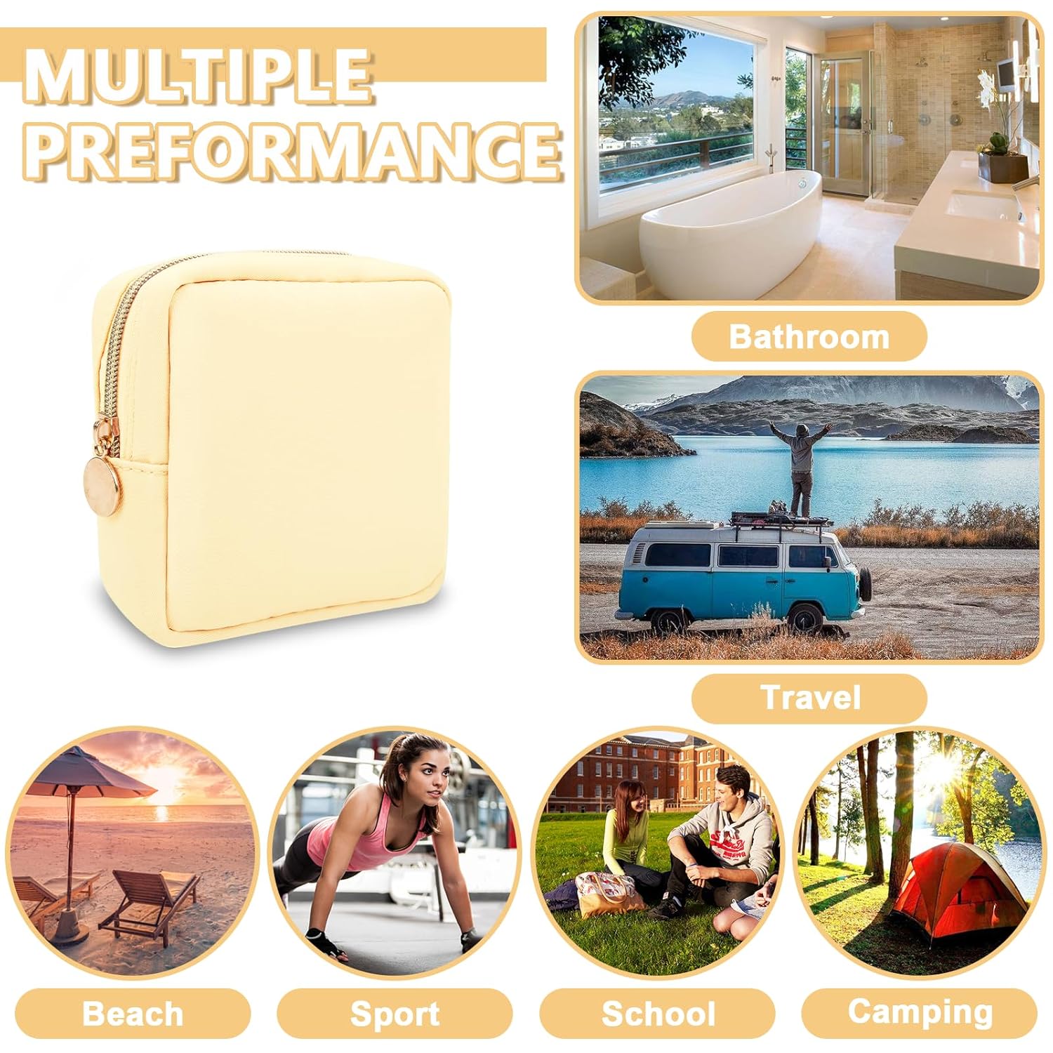 - 【Multi-purpose】The preppy makeup bag makes it easy to pack and carry cosmetics, jewelry, sanitary napkins, brushes, pencils, small electronic accessories, toiletries, medications, tools or other travel essentials. It's a great bag for school, travel, parties, camping, beach, gym, etc.
