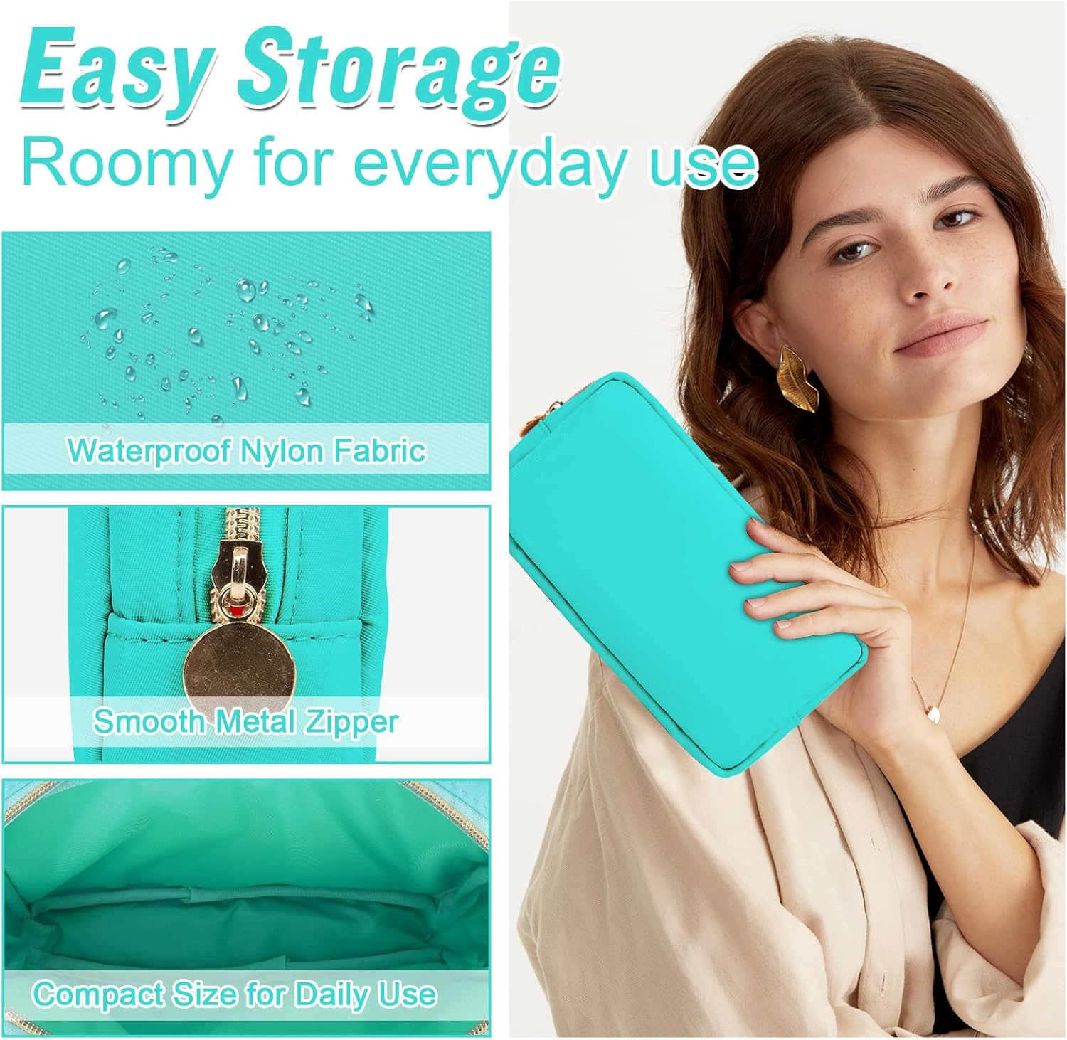 - ❤【Multiple Sizes & Colors】Large, Small, Mini, or Slim, we have it all! Cosmetic bags are available in many colors: Hot Pink, Beige, Black, Blue, Pink and other colors for you to choose. Nylon makeup bag for purse can be used for travel, outdoors and organization, it can be used as a coin pouch, purse bag, travel pouch, clutch, makeup organizer and more.