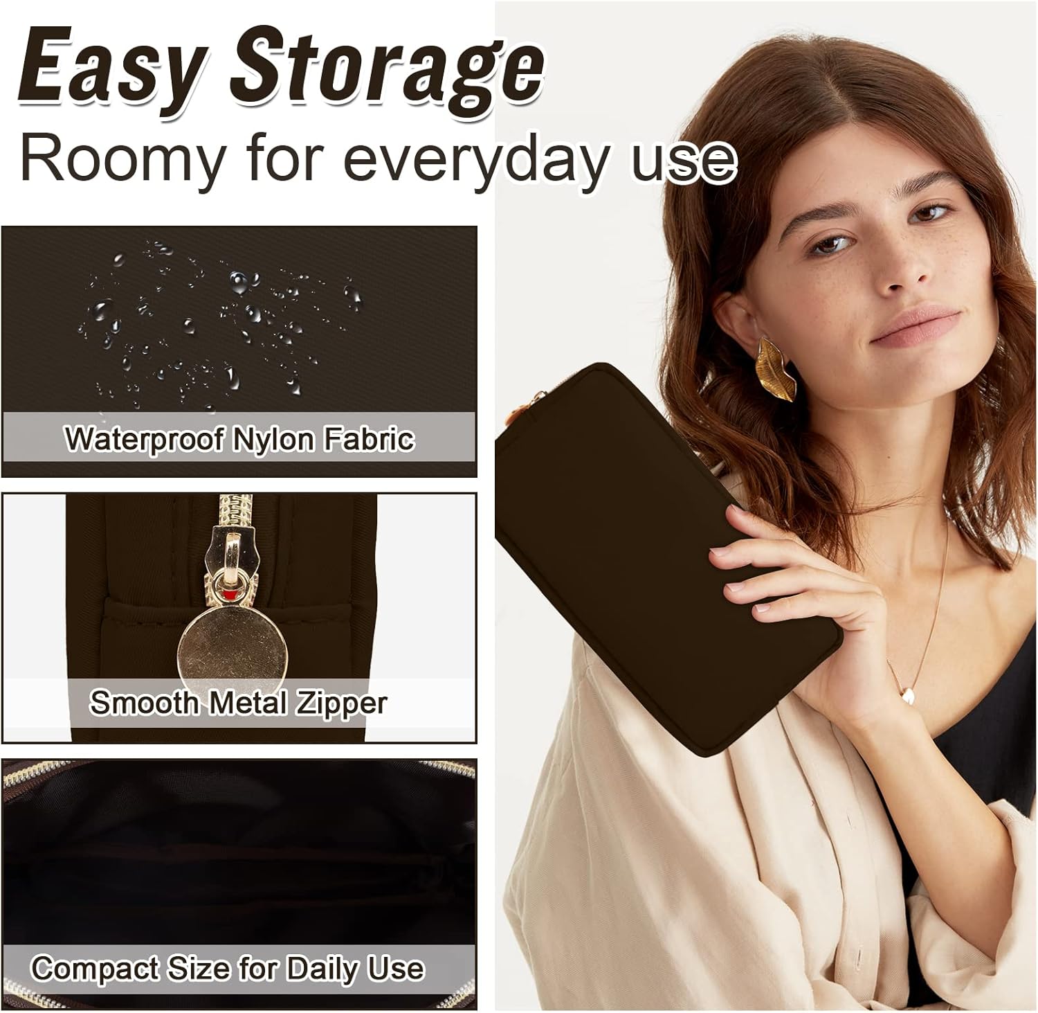 - ❤【Multiple Sizes & Colors】Large, Small, Mini, or Slim, we have it all! Cosmetic bags are available in many colors: Hot Pink, Beige, Black, Blue, Pink and other colors for you to choose. Nylon makeup bag for purse can be used for travel, outdoors and organization, it can be used as a coin pouch, purse bag, travel pouch, clutch, makeup organizer and more.