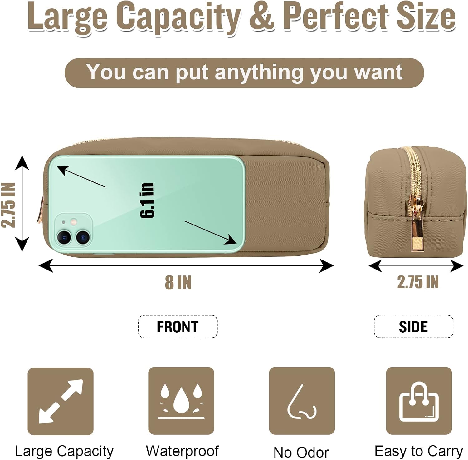 - ❤【Premium Materials】Slim Small makeup bag is made of high-quality nylon waterproof material and durable gold zipper, which does not fade, has no peculiar smell, and is durable. Stylish appearance, easy to wipe clean, dustproof and waterproof. The makeup pouch interior is covered with thick sponge to protect your belongings at all times.