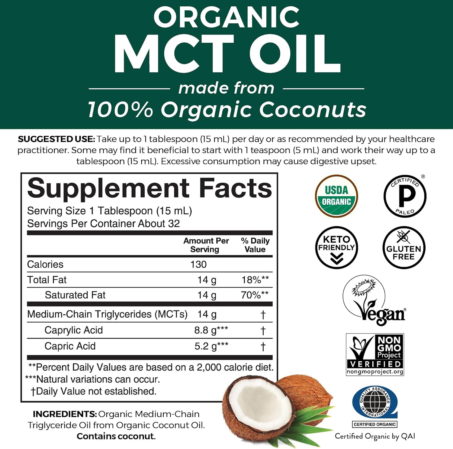 - Special Feature : Organic, Keto & Paleo Certified, Coconut-Derived, MCT Oil