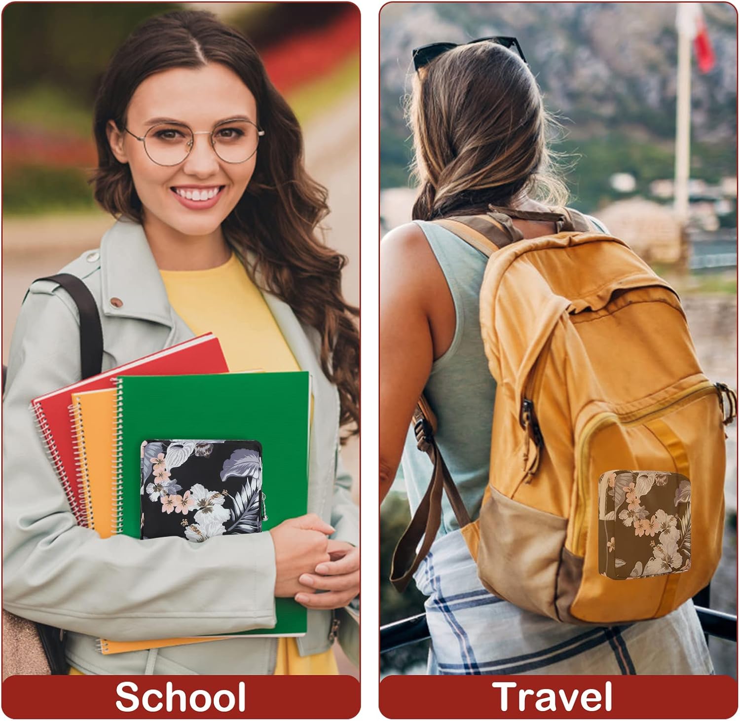 - 💕 【Meet Your Day's Needs】- Having a compact size: 5.1 x 5.1 x 1.6 inches, the pad storage bag can hold 6-10 pieces of normal size sanitary napkins. The inner pocket inside the pad pouch is easy to store small size tampons to keep them clean and orderly. Easily put the sanitary pads pouch in your backpack or handbag.