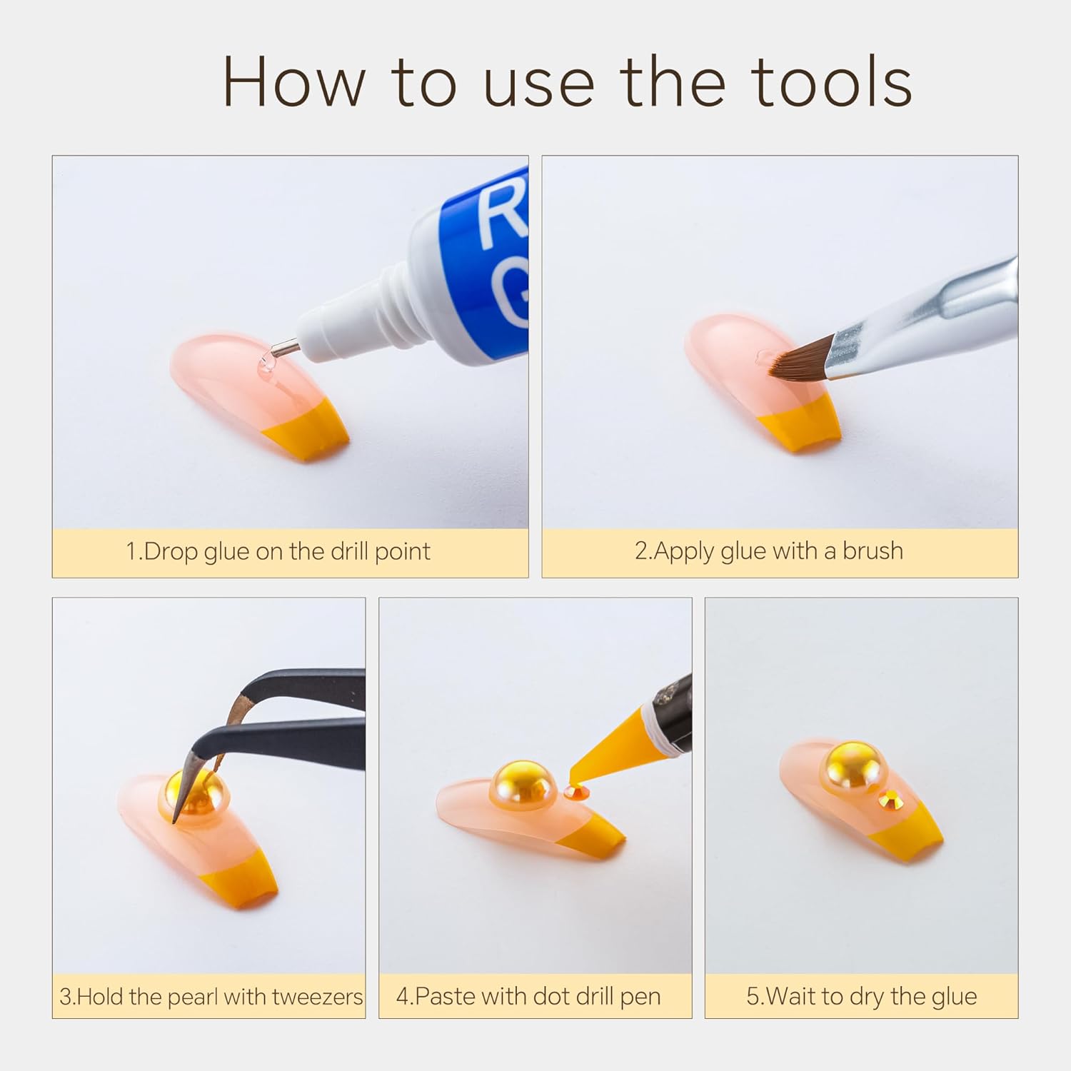 - Useful tools - These pearls and rhinestones have a flat back, which is excellent for easy placement.and you can pick up any large or small pearls and rhinestones with the crayons we bring along. And use the brush to smooth out the Gel, these tools will work very well