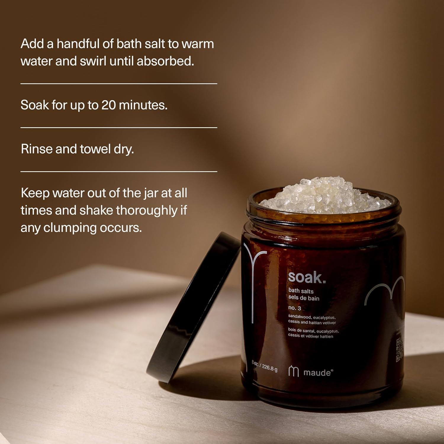 Maude Soak No. 3 - Nourishing Mineral Bath Salts - Hand-Harvested Dead Sea Salt with Magnesium & Potassium Chloride - Soften & Rejuvenate Skin - Notes of Sandalwood & Eucalyptus (8 oz)