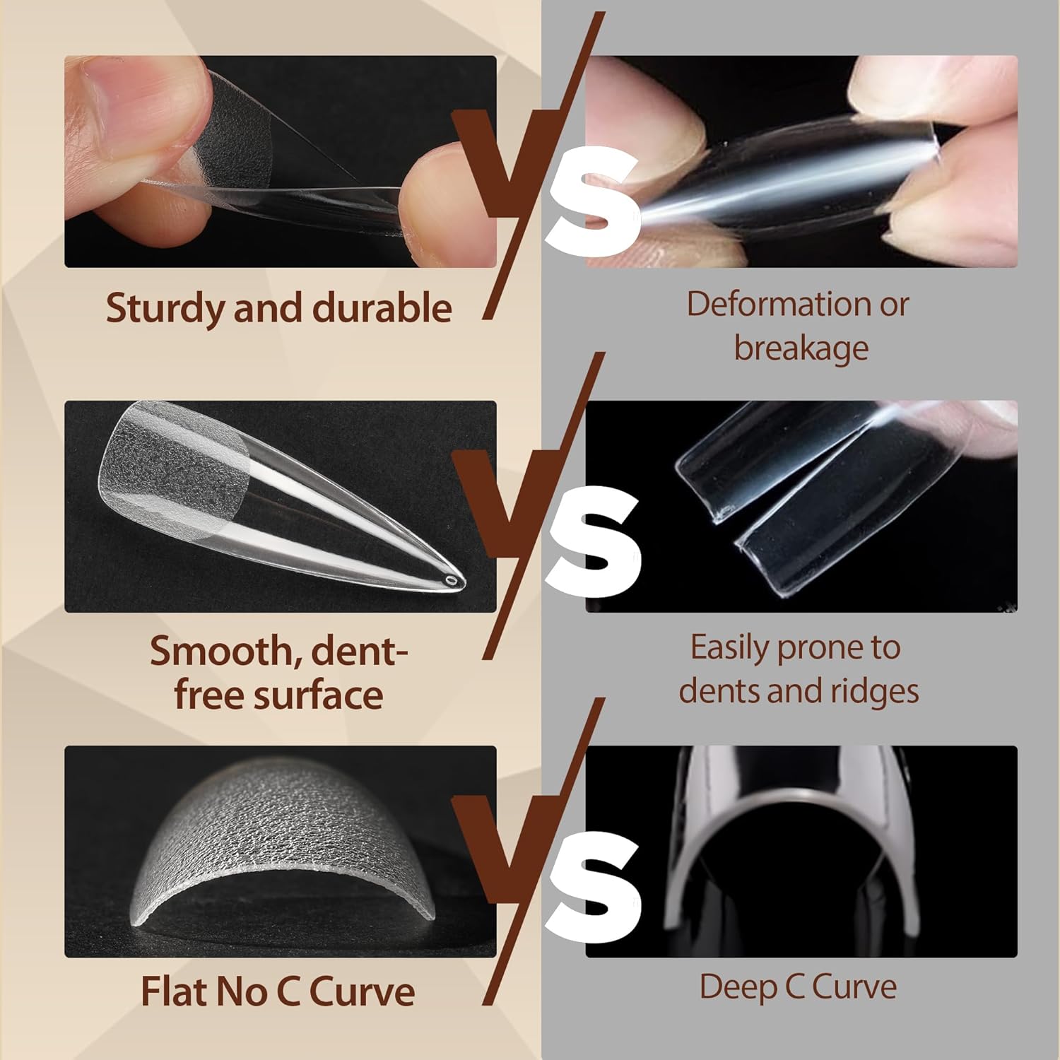 - 【Natural Fit Effect】 - The soft long fake nails feature a “ Thin back edge, thick front edge”. The thinner back edge can make the full acrylic nails fit your nails better. The clear surface of gel nail tips makes the color more visible. The thickened front edge makes it not easy to break or bend, having a longer lifespan. Just like your natural nails!