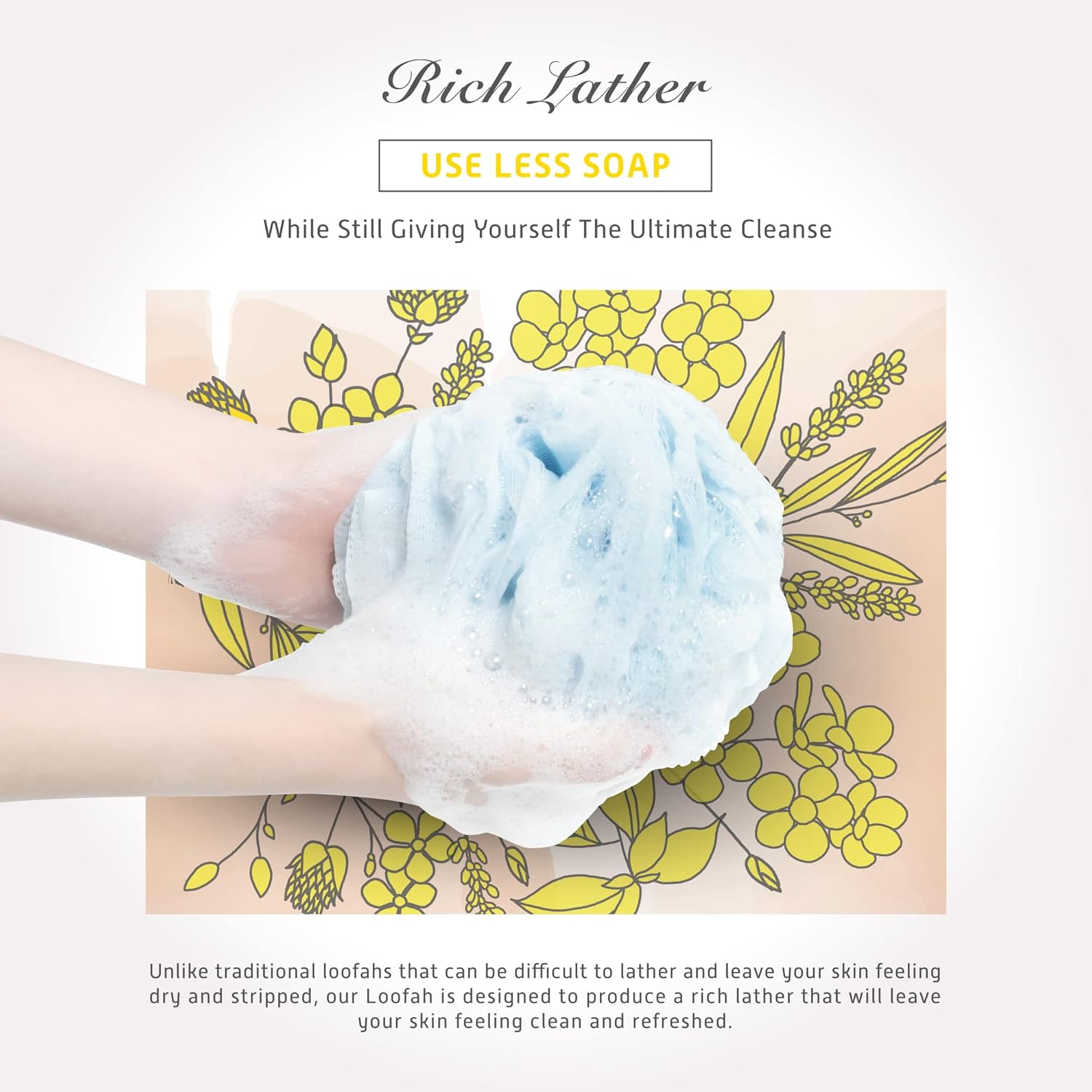 - QUALITY CONSTRUCTION - The loofahs are fluffy and durable with ultra fine mesh material, making them the perfect choice for your daily exfoliating routine. They are gentle on your skin, providing a comfortable and enjoyable experience.