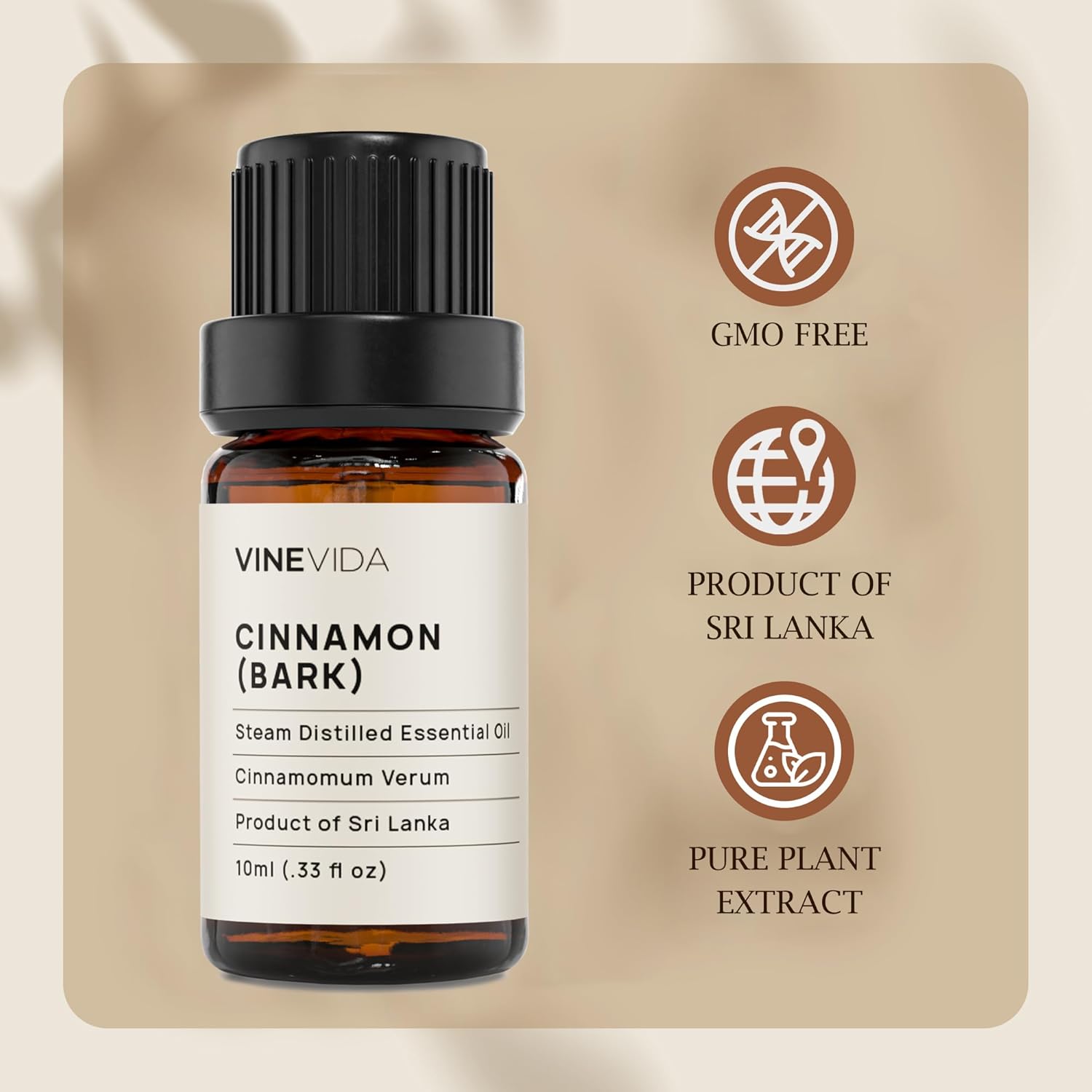 VINEVIDA Cinnamon Bark Essential Oil - Undiluted Cinnamon Oil - Candle Oil Scent - DIY Candle Scents - 10 mL for Soap Making & Skin Safe
