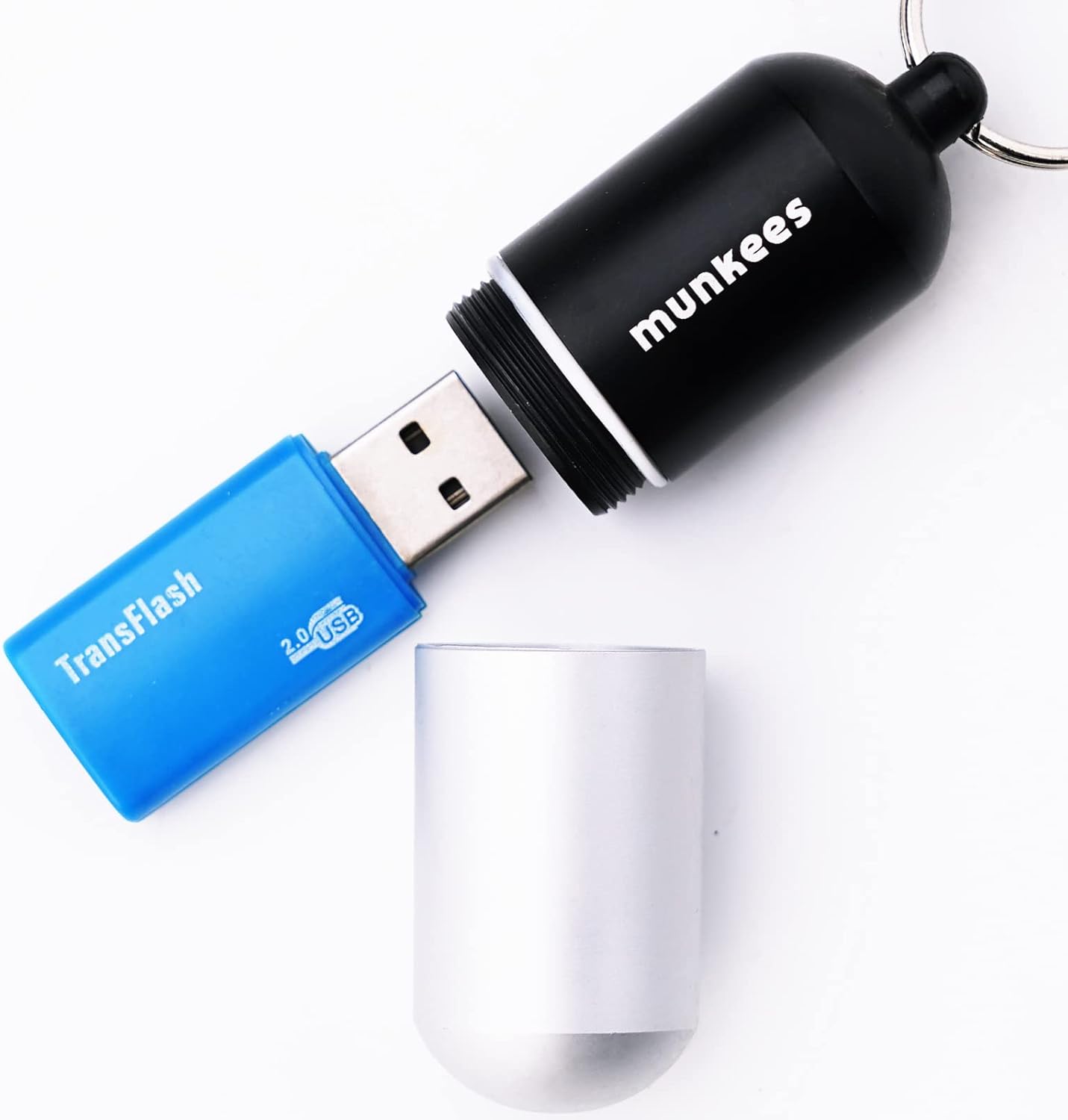 munkees Portable Pill Case Large Waterproof Capsules EDC Keychain, Travel Pill Bottle for Camping, Hiking, Backpacking, Compact Valuables Container for Outdoors 2-Pack