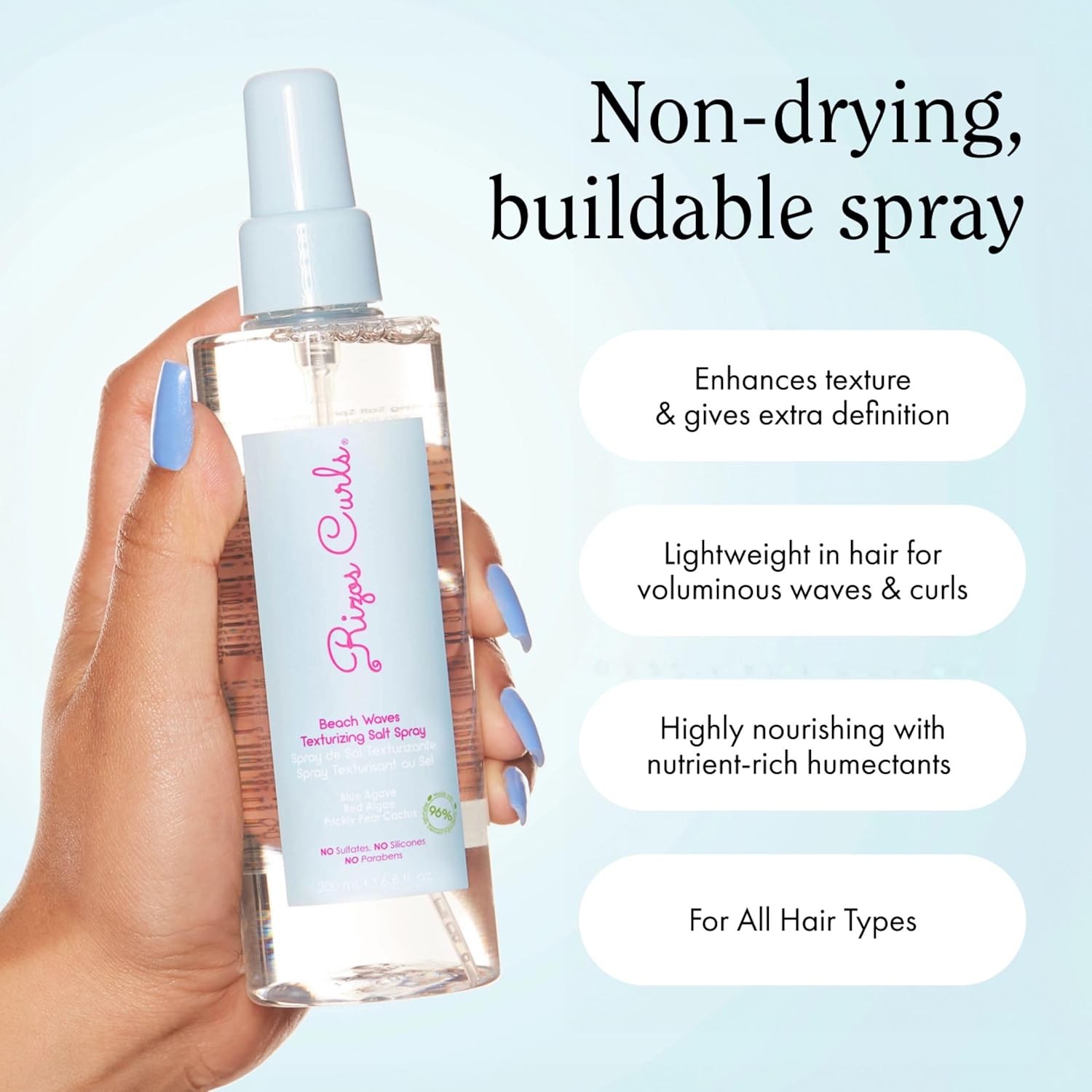Rizos Curls Beach Waves Texturizing Salt Spray, Enhance Texture & Volume, Nourish and Enhance Definition with Blue Agave Extract, Red Algae & Prickly Pear Cactus, 6.8 oz