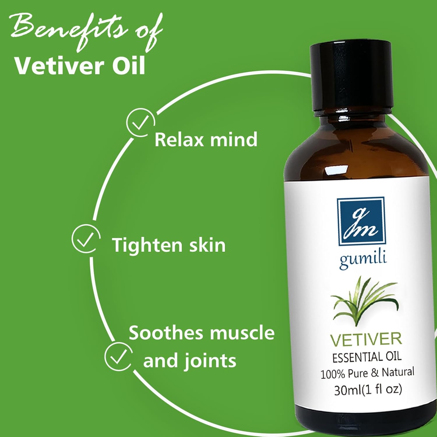 - 100% Pure Vetiver Essential Oil: Our Vetiver Essential Oil is steam distilled from premium vetiver roots, offering a rich, earthy aroma perfect for relaxation, aromatherapy, and massage.