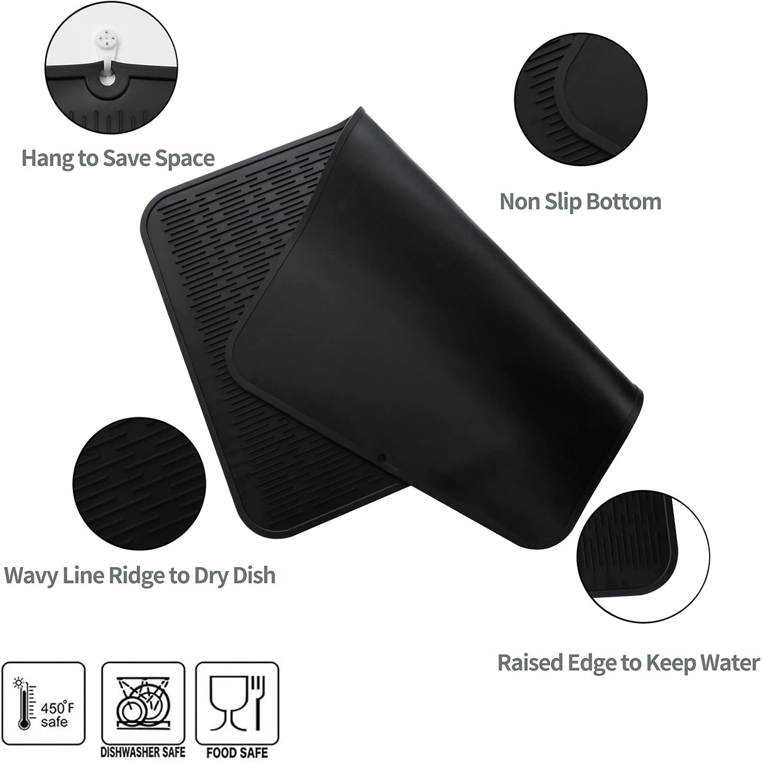 Silicone Dish Drying Mat for Multiple Usage,Easy clean,Eco-friendly,Heat-resistant Silicone Mat for Kitchen Counter or Sink,Refrigerator or Drawer Liner Black 4XL 32 inches x 18 inches