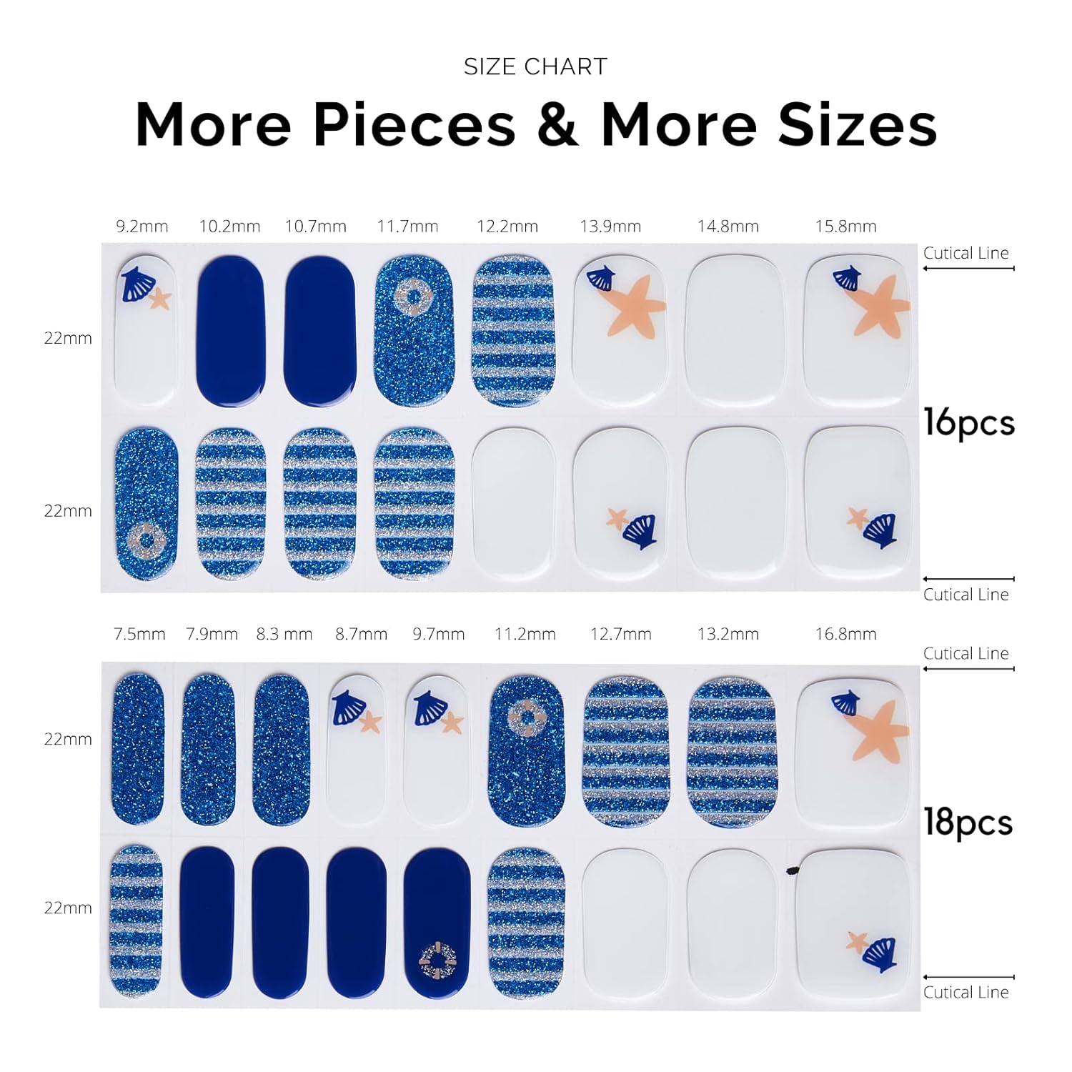NAILOG Semi Cured Gel Nail Strips for Summer 34 pcs, Buy 2 Get 1 UV Lamp, Salon-Quality Nail Strips with Soft Gel Finish | Marine Story