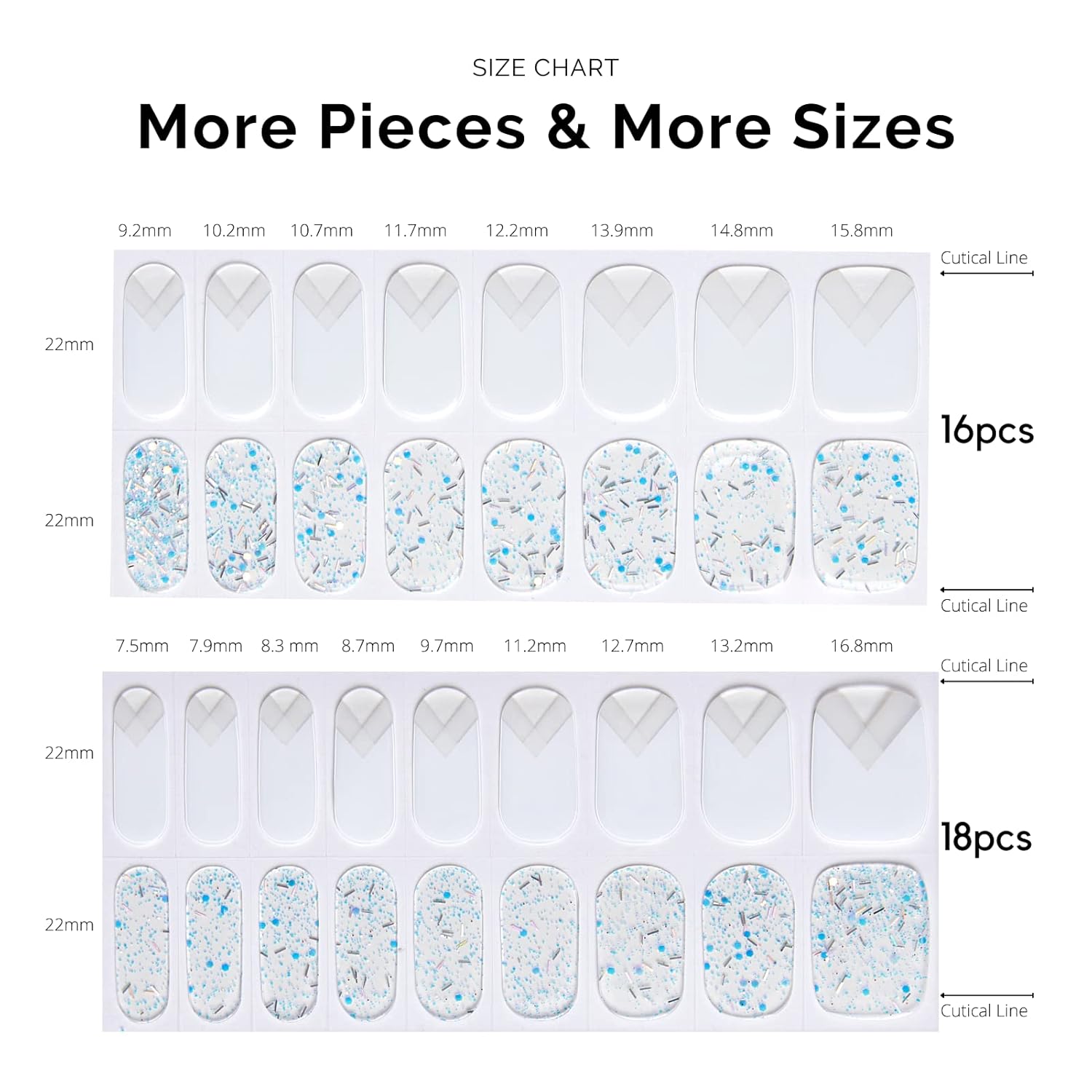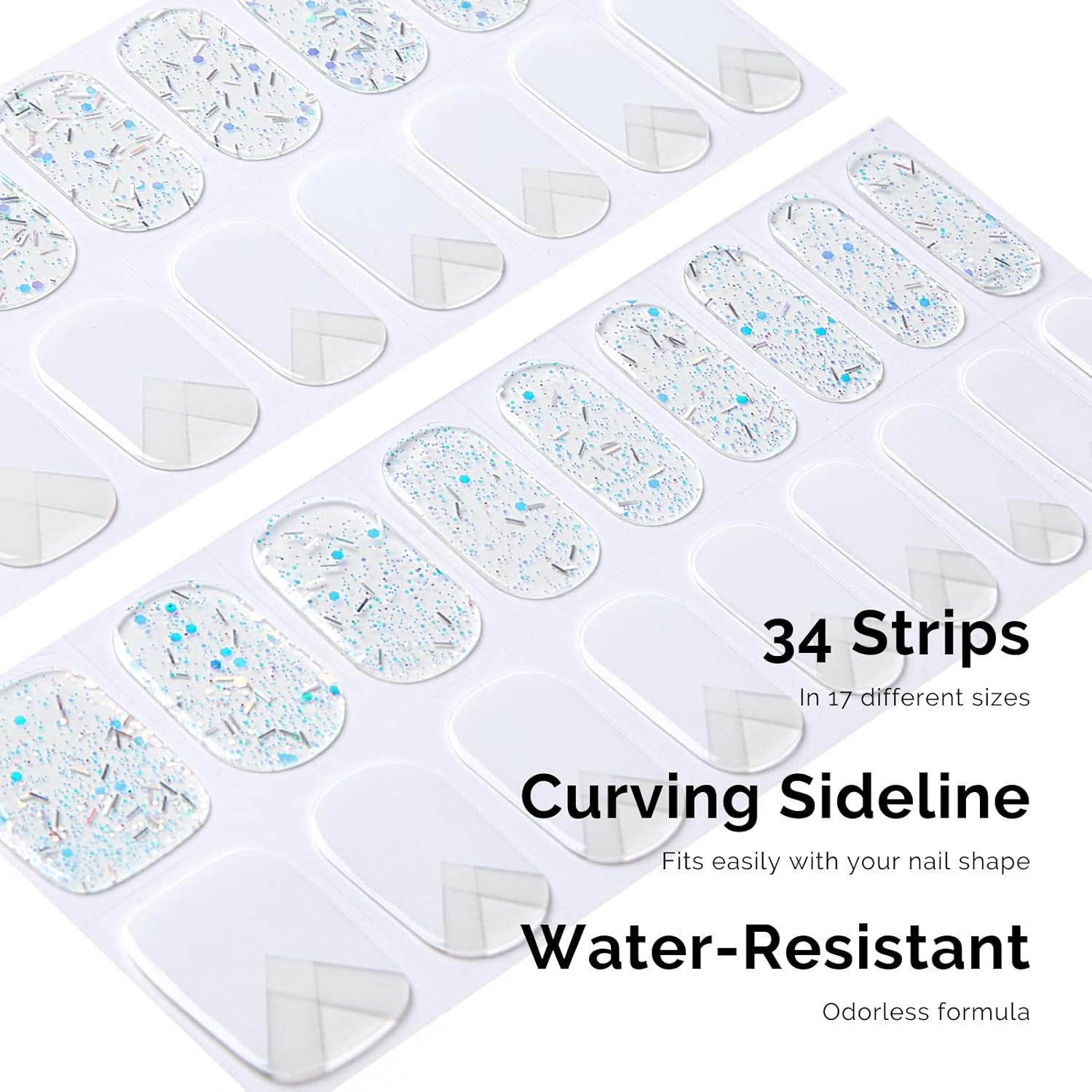 - 【WHAT YOU GET】34 Pieces gel polish strips in 17 sizes, 2 prep pads, 1 nail file, and 1 wooden stick. -Our semi cured nail strips are free from toxic, animal-derived, or harmful ingredients and are vegan, safe to use, and odorless. A perfect cost & time-saving DIY manicure kit.