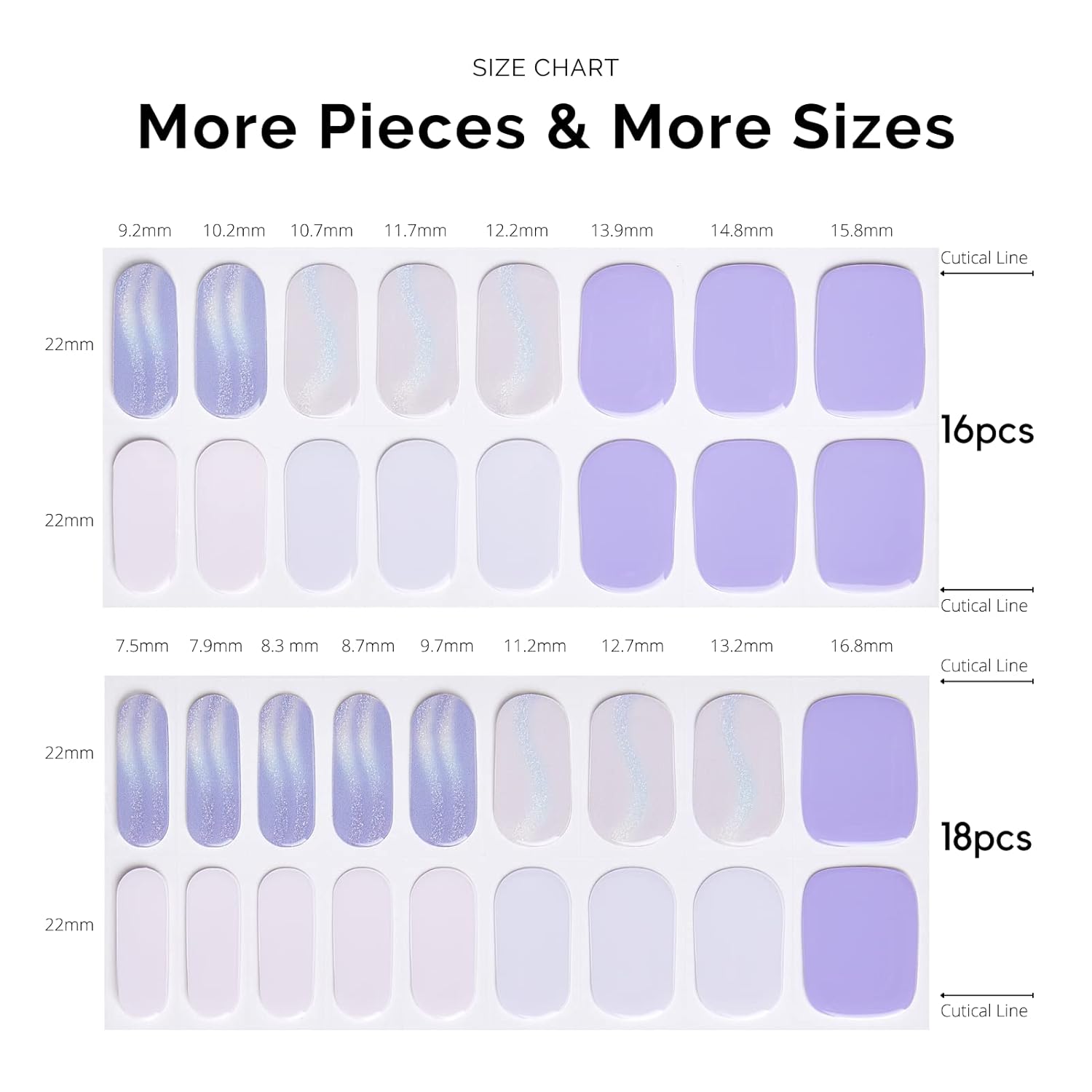 - 【WHAT YOU GET】34 Pieces gel polish strips in 17 sizes, 2 prep pads, 1 nail file, and 1 wooden stick. -Our semi cured nail strips are free from toxic, animal-derived, or harmful ingredients and are vegan, safe to use, and odorless. A perfect cost & time-saving DIY manicure kit.
