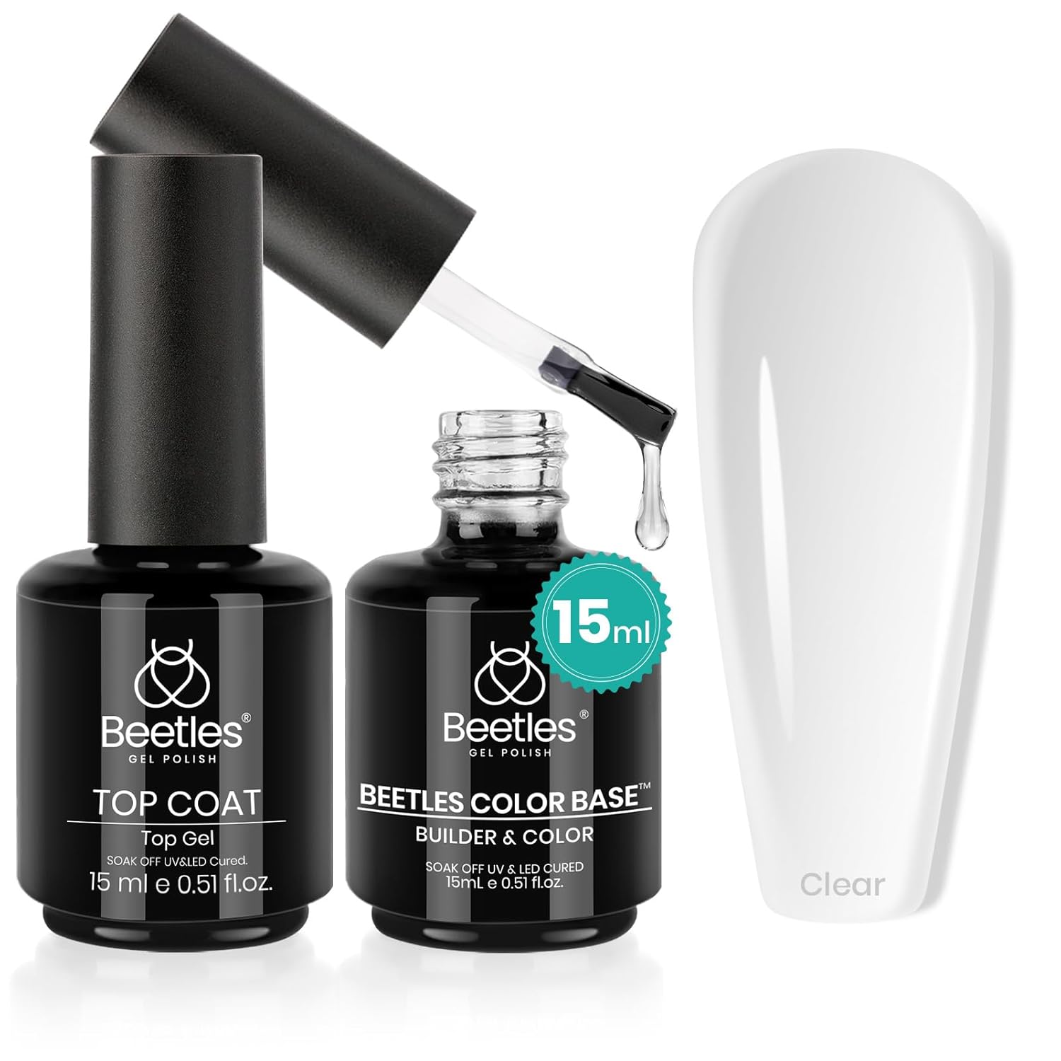 Beetles Gel Top Coat & Clear Rubber Base Gel Polish Set, 2Pcs 15ml Top Coat Nail Polish and Clear Nail Polish Soak Off UV LED for Nail Art Long Lasting DIY Manicure Use Gifts for Women