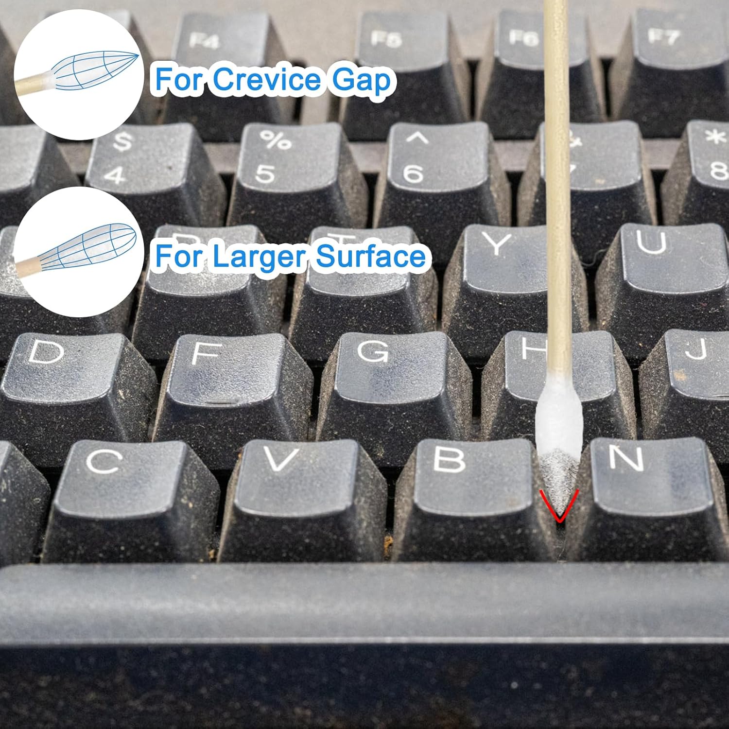 - Get versatility and easily tackle different cleaning tasks with our set of 100 pointed tip and 100 round tip swabs. The pointed tips are perfect for precision cleaning in tight spaces, while the round tips are more suitable for broader cleaning tasks.