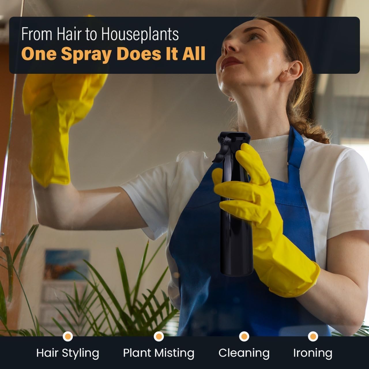 VIGOR PATH Continuous Spray Bottle with Ultra Fine Mist - Versatile Water Sprayer for Hair, Home Cleaning, Salons, Plants, Aromatherapy, and More - Empty Hair Spray Bottle - 300ml/10.1oz (Black)