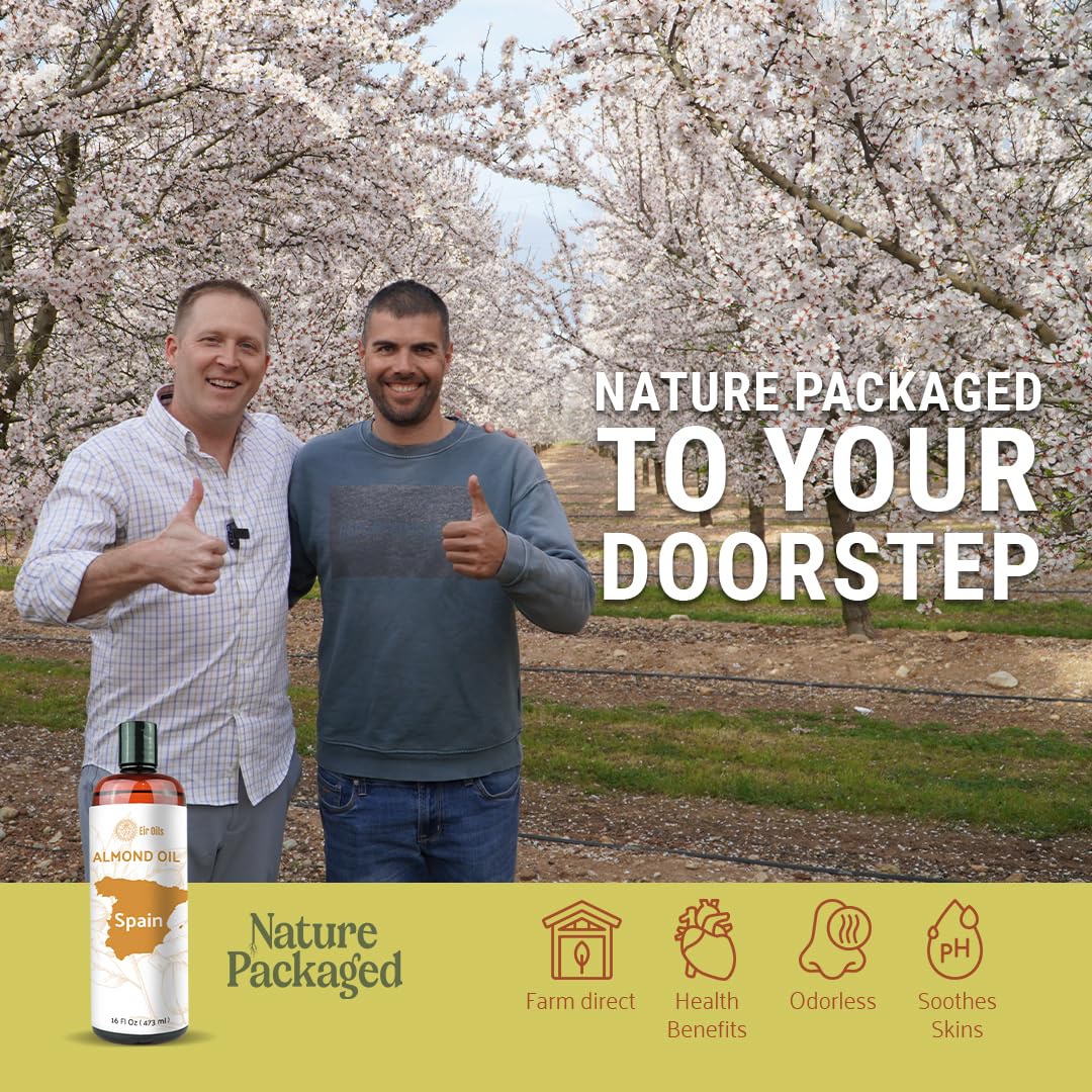 Sweet Almond Oil (16 oz) - for Skin and Hair - Carrier Oil for Essential Oils Mixing - From EIR Oils' Farm in Mallorca, Spain - 2 Packs