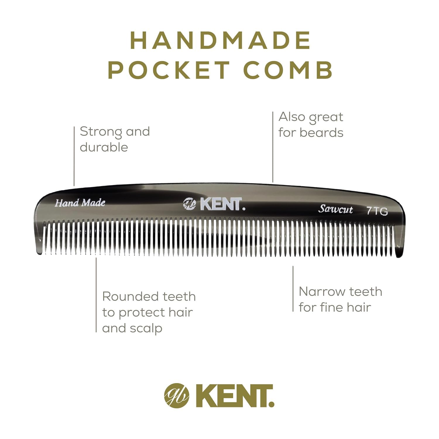 - GENTLE GLIDING COMB: The hand sawn combs are the nature of Kent’s Success. Cellulose acetate is a tactile, yet flexible and strong matrial. They glide effortlessly through hair without scratching or damaging the hair or scalp. Kent Combs have rounded teeth which ensure smooth and comfortable action.