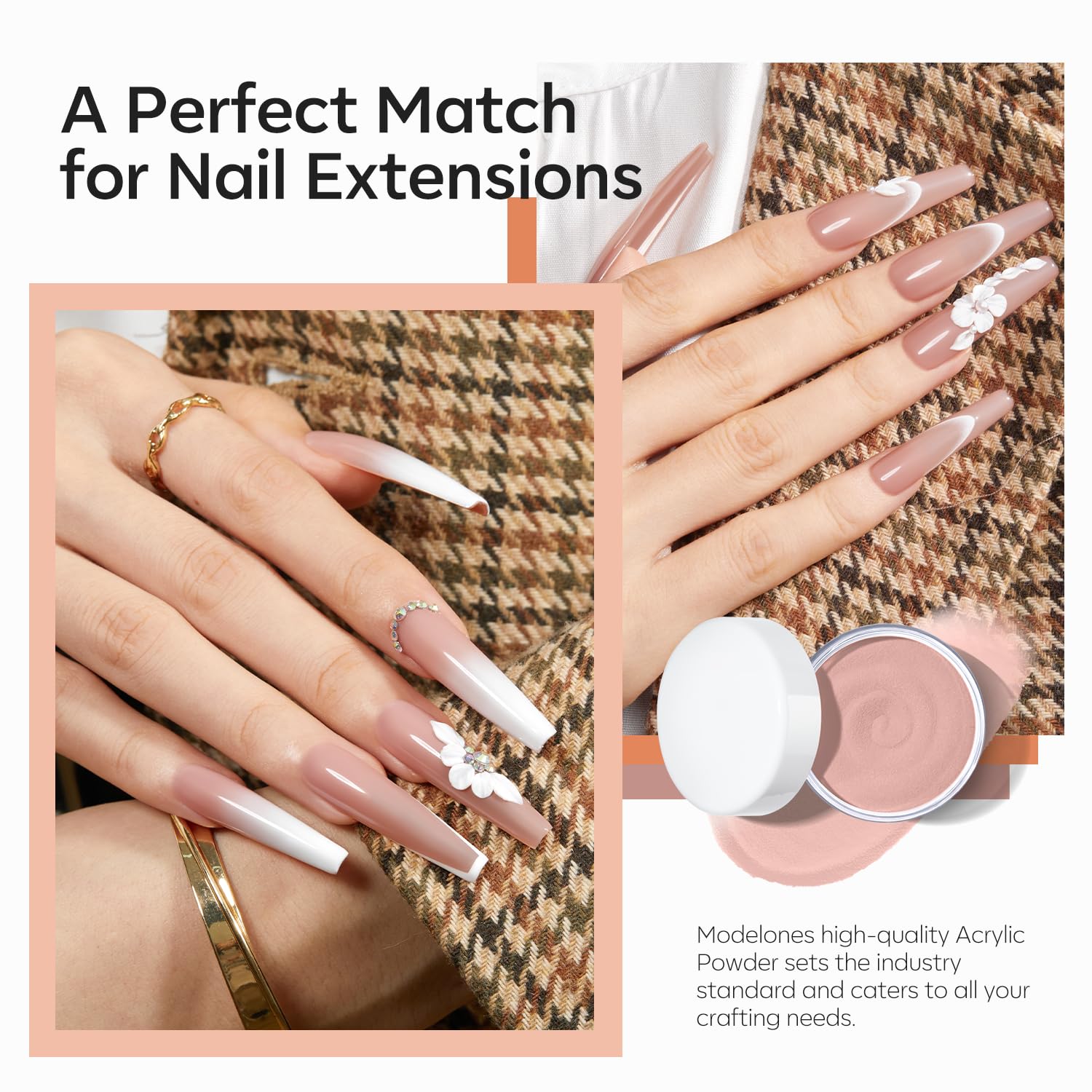 - Versatile Large-Capacity Acrylic Powder: Modelones nail acrylic powder is large capacity 120 g/4.23 oz. It works with acrylic liquid, acrlic brush. Easily adapting to French manicure, acrylic nails, carving, nail extensions and various nail decorations. It's an essential item in nail art supplies, meeting diverse nail art creation needs