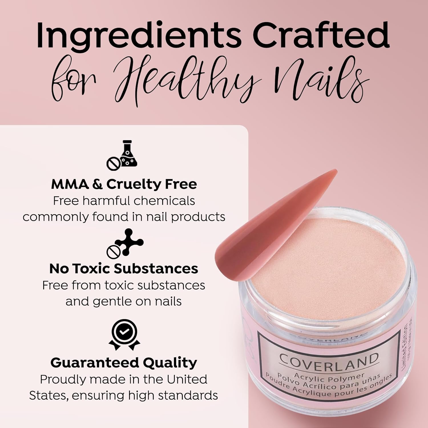 - βοΈππππ ππππππππ πππππ: The flexibility and adhesion properties of Coverland colored acrylic nail powder make it easy to shape nails with precision, and offers nice control for professionals who prefer to work with a polymerization rate of moderate to fast.