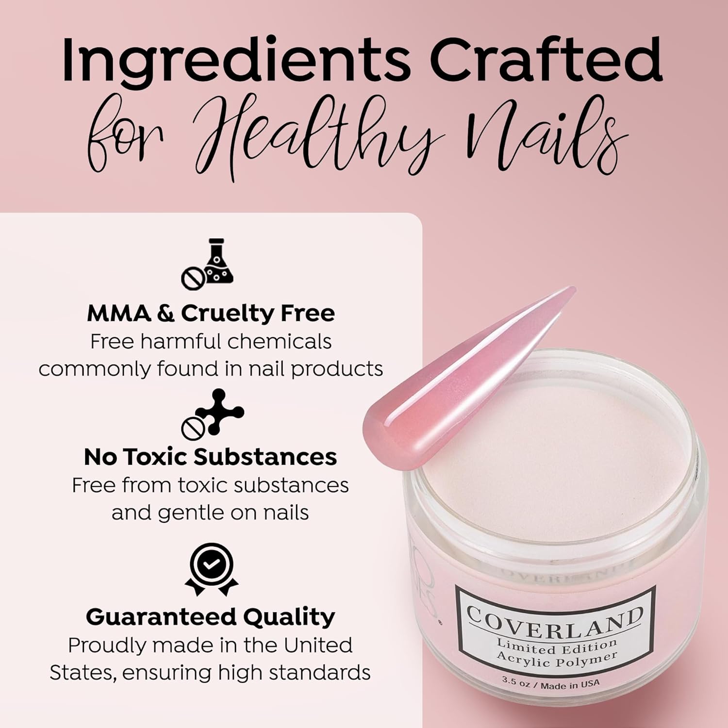- βοΈππππ ππππππππ πππππ: The flexibility and adhesion properties of Coverland colored acrylic nail powder make it easy to shape nails with precision, and offers nice control for professionals who prefer to work with a polymerization rate of moderate to fast.