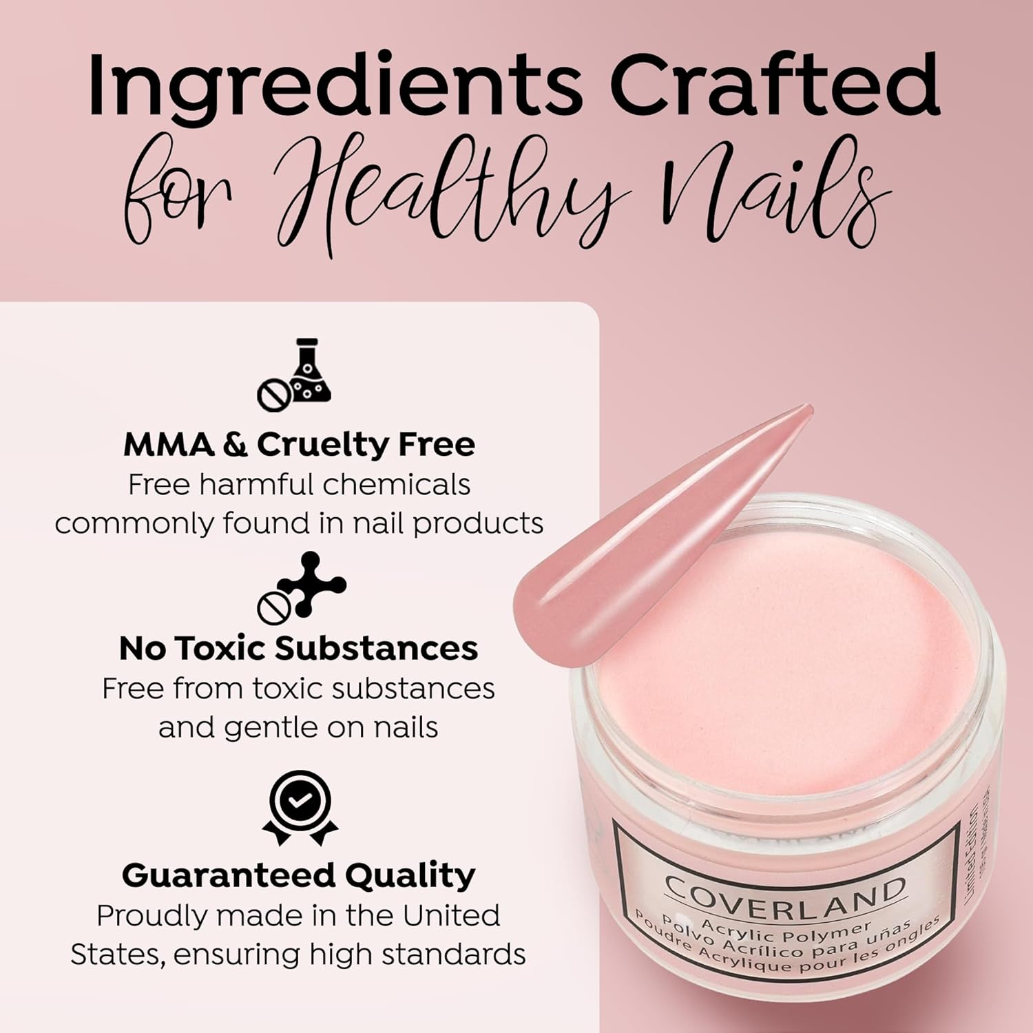 - βοΈππππ ππππππππ πππππ: The flexibility and adhesion properties of Coverland colored acrylic nail powder make it easy to shape nails with precision, and offers nice control for professionals who prefer to work with a polymerization rate of moderate to fast.