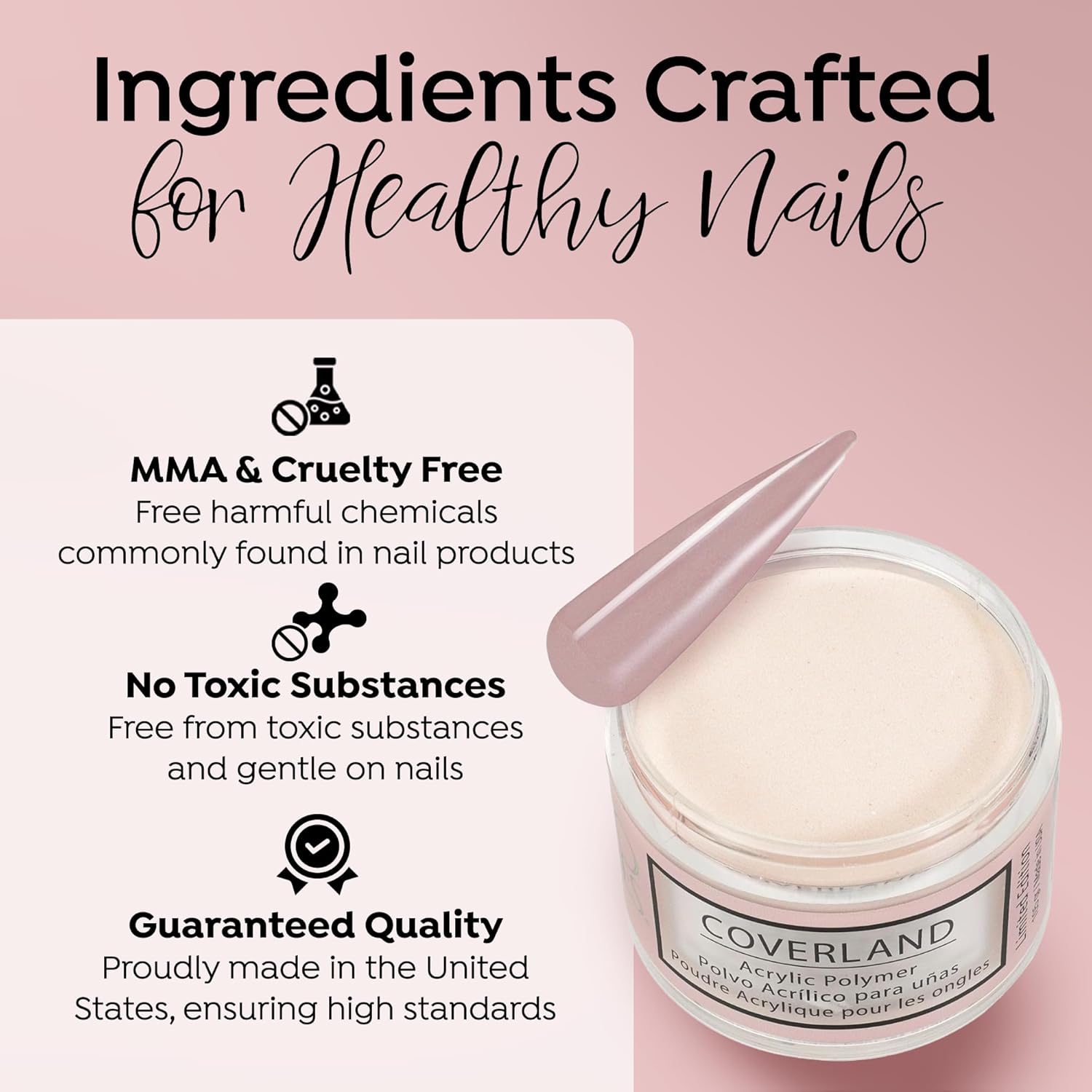- βοΈππππ ππππππππ πππππ: The flexibility and adhesion properties of Coverland colored acrylic nail powder make it easy to shape nails with precision, and offers nice control for professionals who prefer to work with a polymerization rate of moderate to fast.