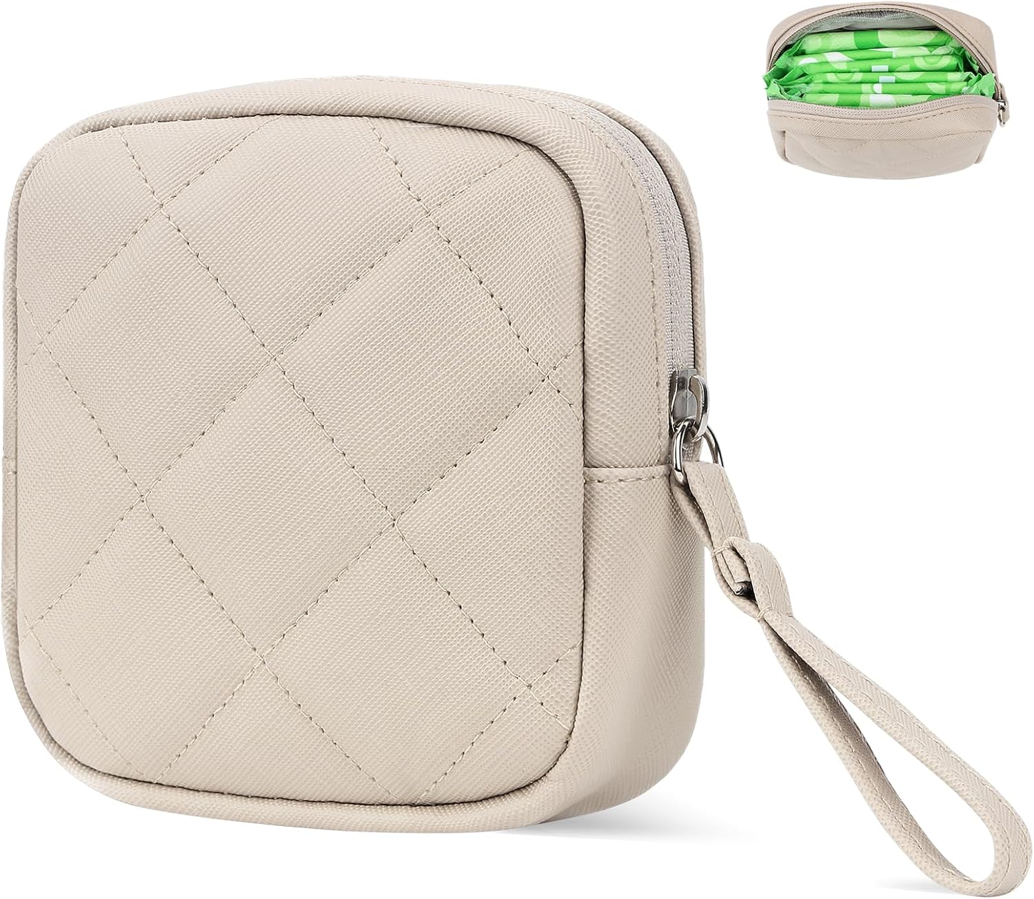Sanitary Pad Storage Bag, Leather Period Bags for Teen Girls, Portable Tampon Menstrual Cup Pouch Nursing Pad Holder Purse, Sanitary Pouch for Feminine Products, 1 Pack(Beige)