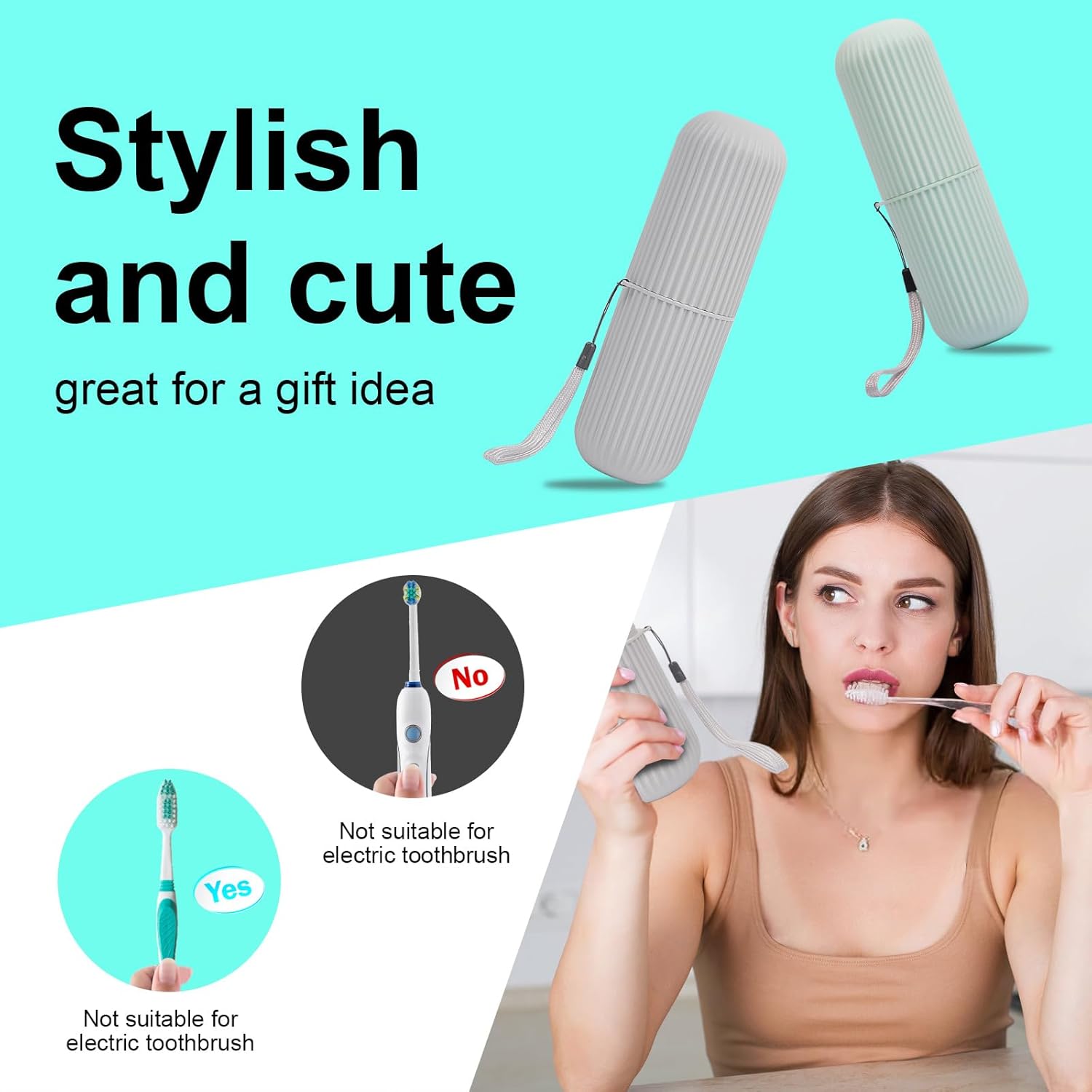 UCEC Toothbrush Cup, Portable Travel Toothbrush Holder Case, Toothbrush Case Set for Camping, Traveling, Home, School, Business, Bathroom, 2 Pack (Green, Grey)