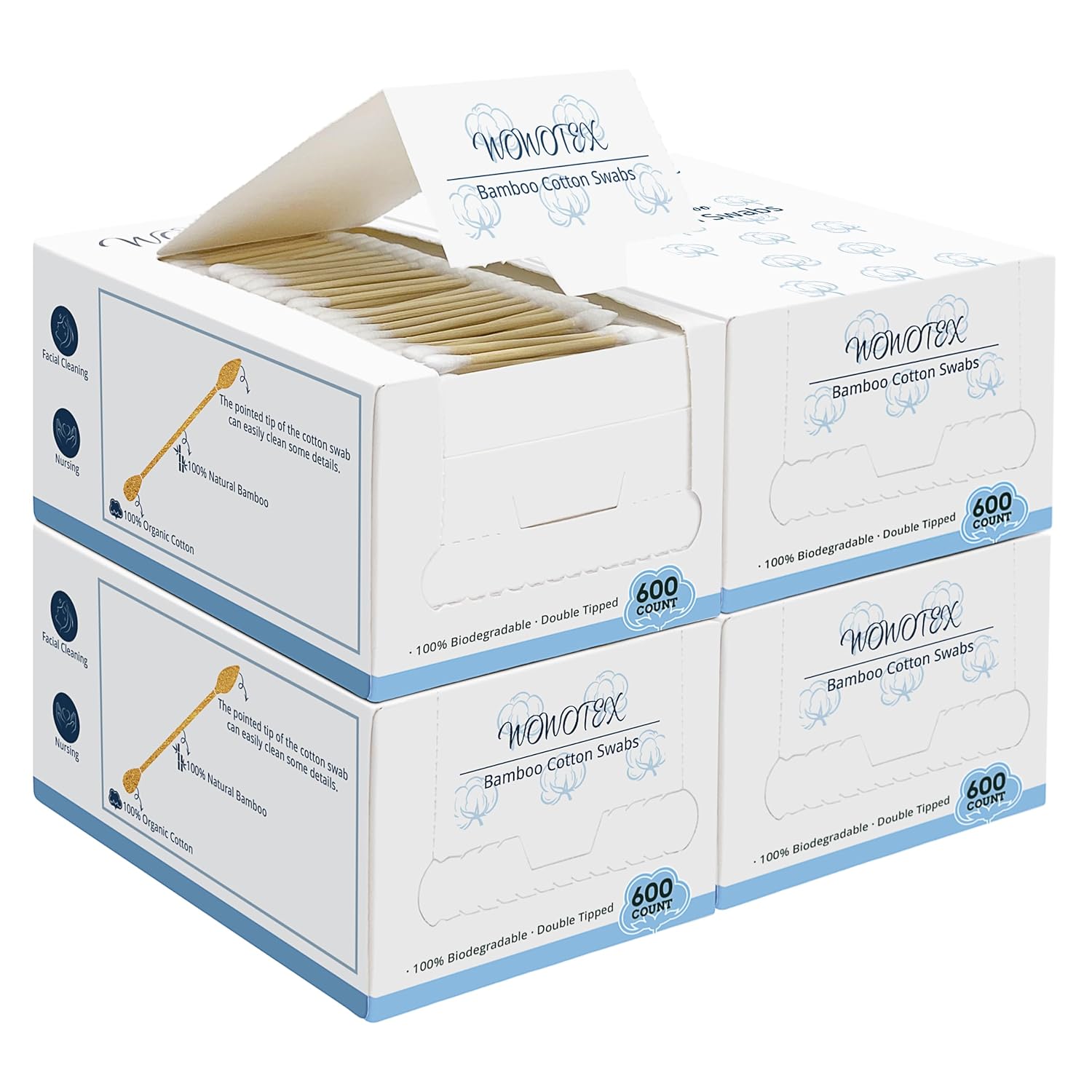 - EXCELLENT MATERIAL : WOWOTEX cotton swabs are made of pure cotton and organic bamboo which are 100% biodegradable.