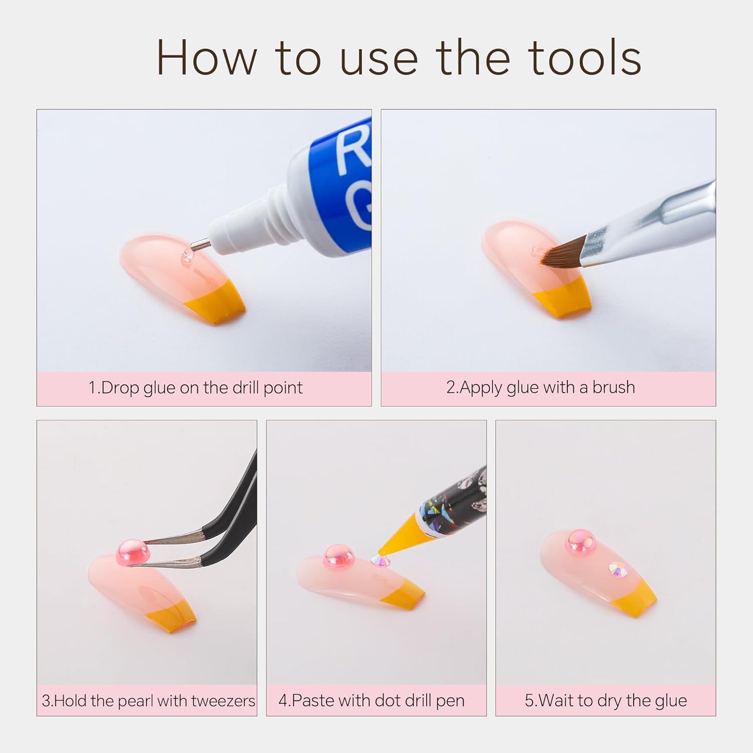 - Useful tools - These pearls and rhinestones have a flat back, which is excellent for easy placement.and you can pick up any large or small pearls and rhinestones with the crayons we bring along. And use the brush to smooth out the Gel , these tools will work very well.
