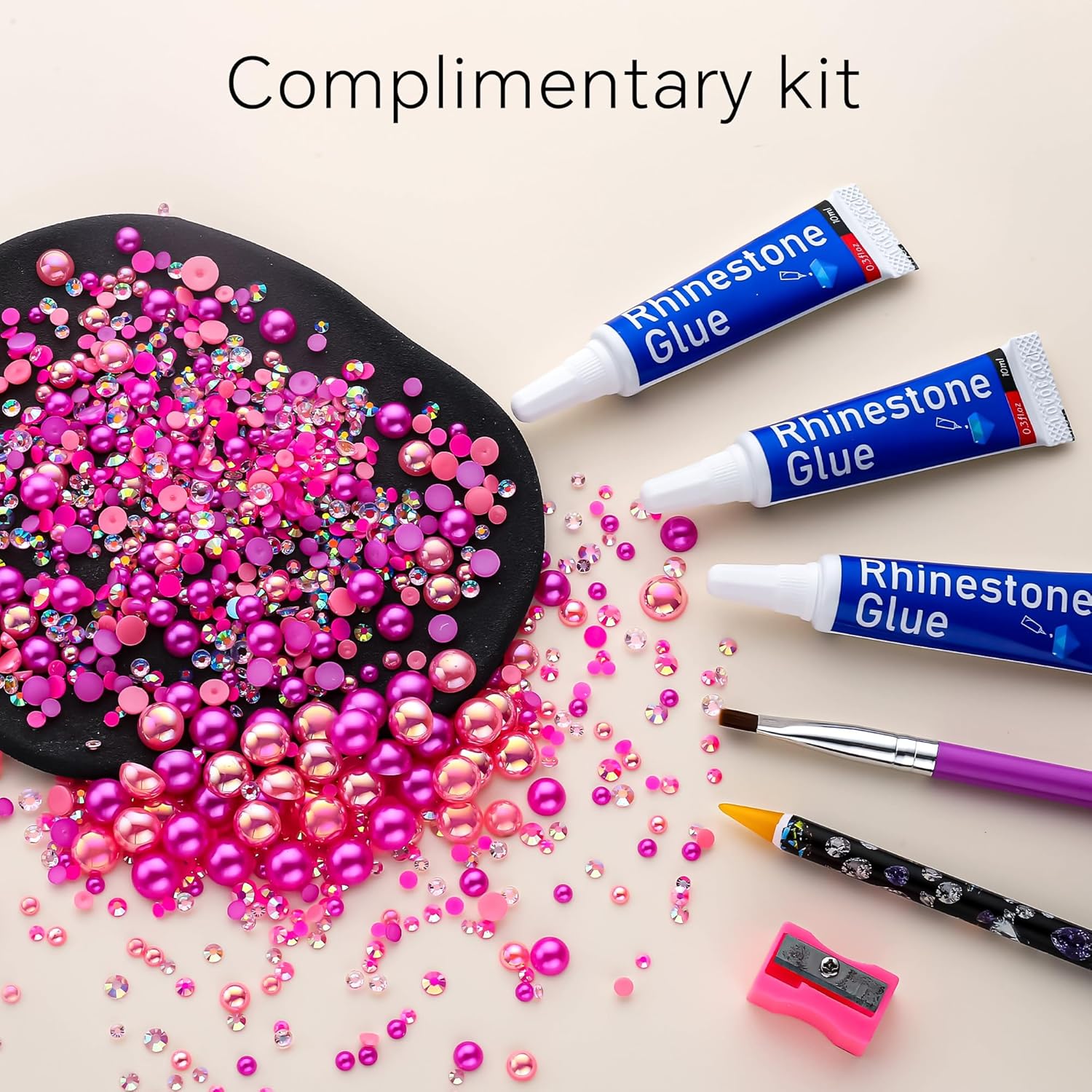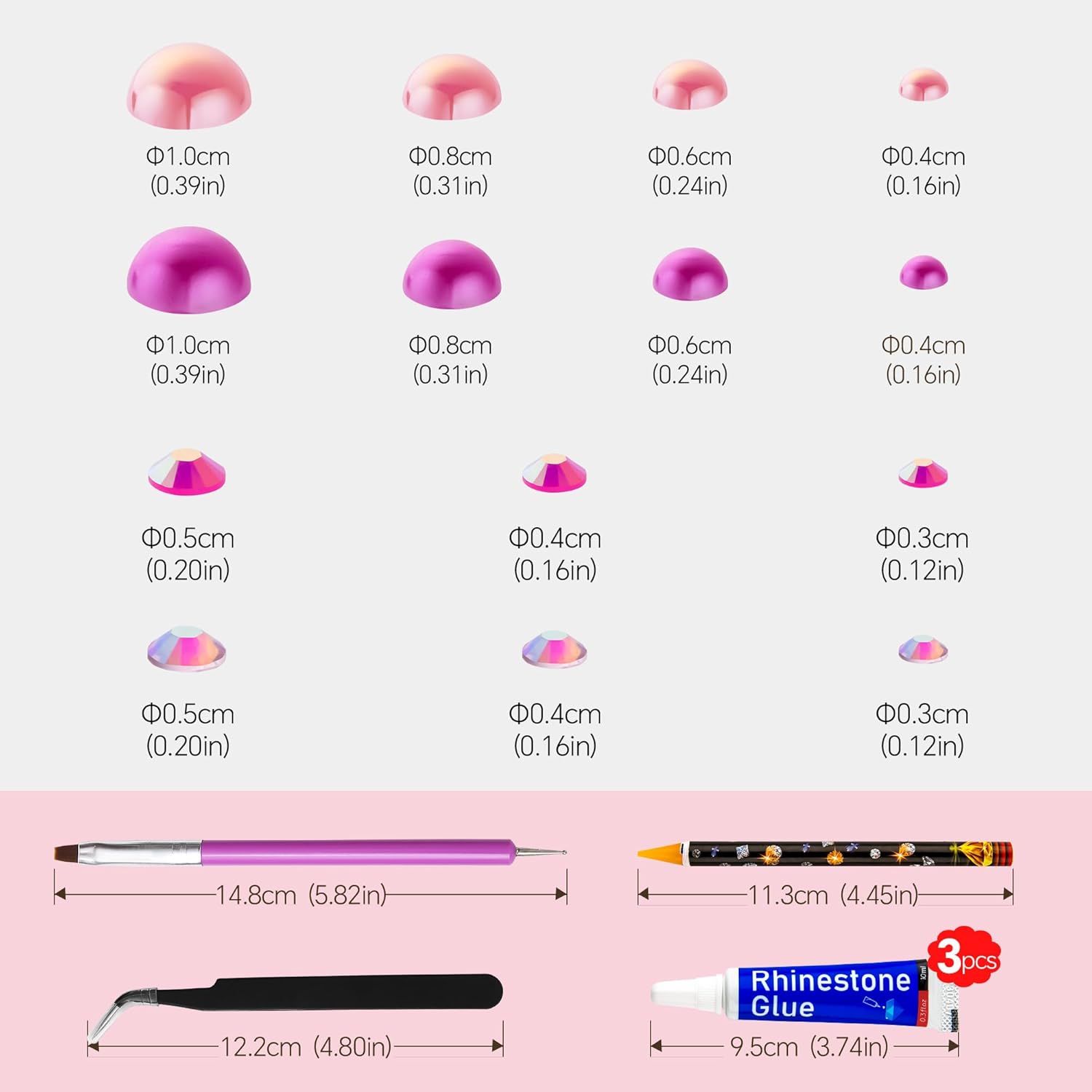 - What You Will Receive: 60g(30g*2)mixed size flat back pearls and rhinestones. 3*Rhinestone Glue. 1* wax pencil for rhinestones. 1*Pencil sharpener(color random). The mix half round pearls and rhinestones can make more beautiful handicrafts for your friends, parents, yourselfs on any festivals.If you need a mixed size pack of pearl rhinestones, search on Amazon:B0BBL2KVMD
