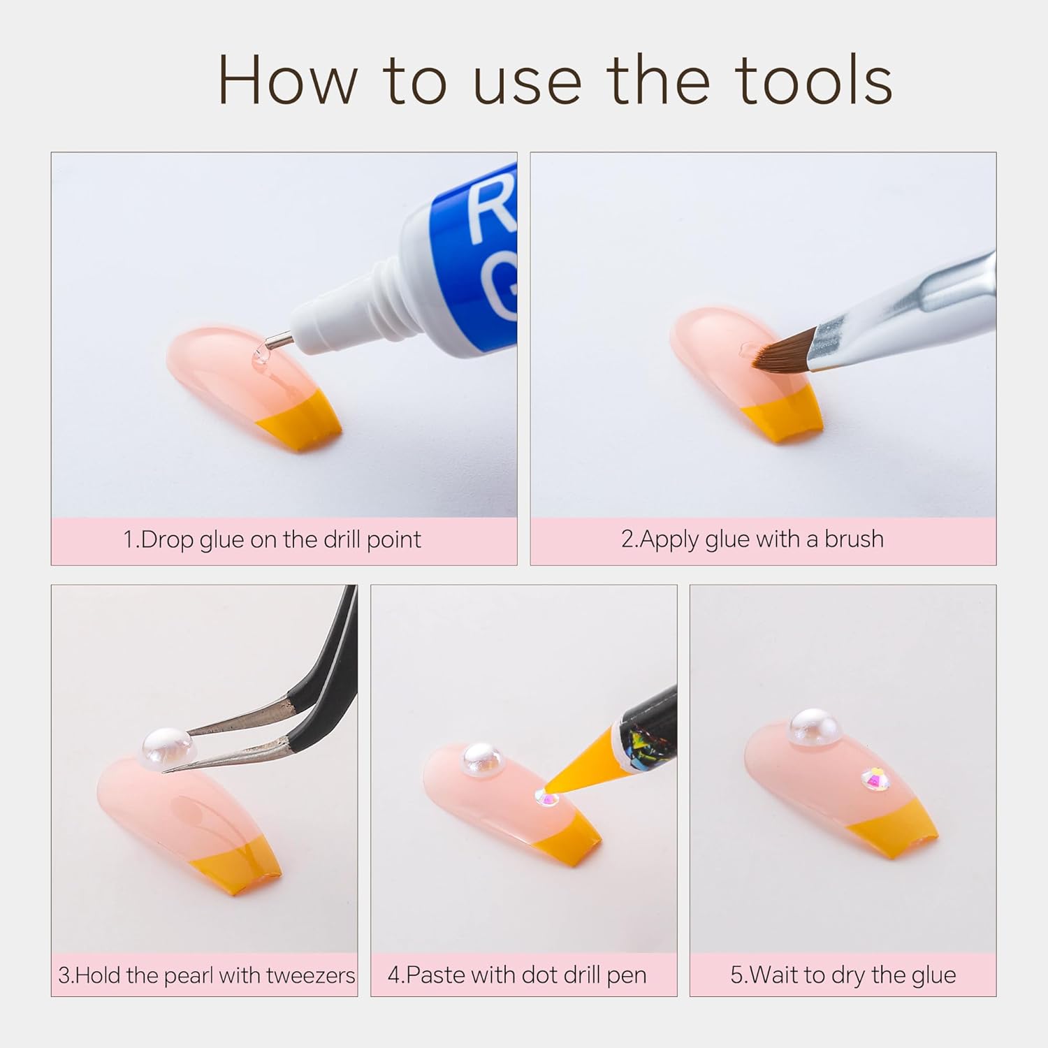 - Useful tools - These pearls and rhinestones have a flat back, which is excellent for easy placement.and you can pick up any large or small pearls and rhinestones with the crayons we bring along. And use the brush to smooth out the Gel, these tools will work very well