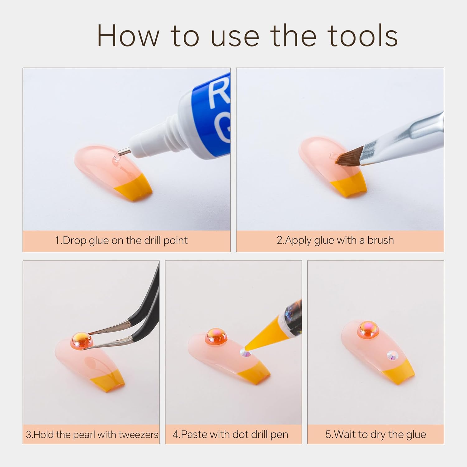 - Useful tools - These pearls and rhinestones have a flat back, which is excellent for easy placement.and you can pick up any large or small pearls and rhinestones with the crayons we bring along. And use the brush to smooth out the glue, these tools will work very well.