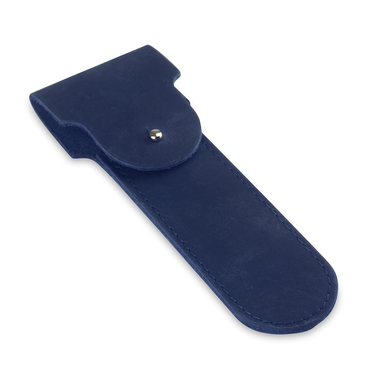 Safety Razor Head Protecting Leather Cover, Genuine Cowhide Leather Double Edge Safety Razor Case Accessories for Travel, Butterfly Razor Case, Soft Leather Double Edge Razor Case (Blue)